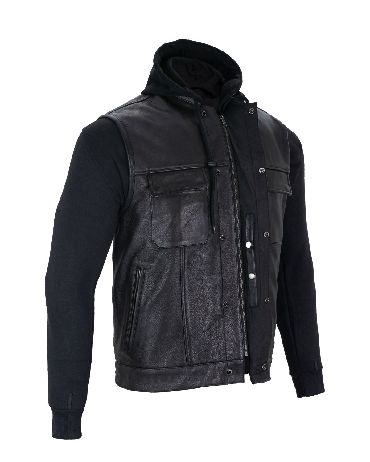 - Zippered removable black hoodie w/ drawstrings pockets