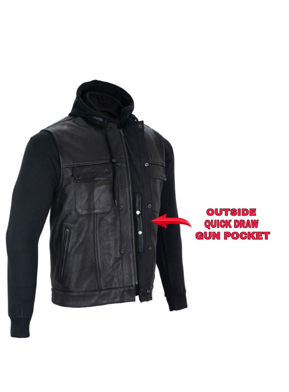 Black Concealed Carry Vest with Removable Black Hoodie