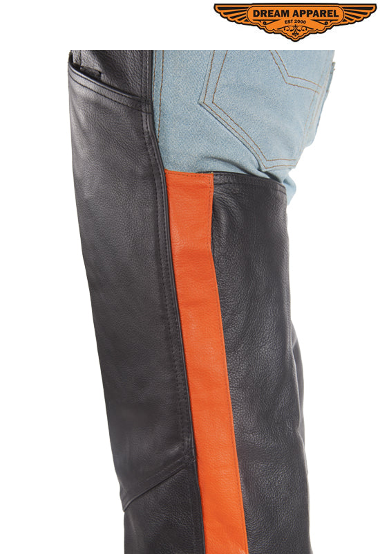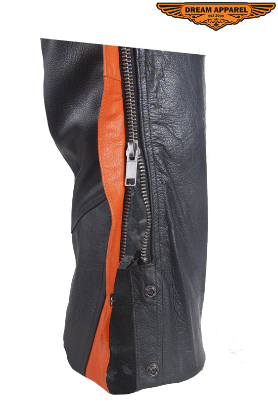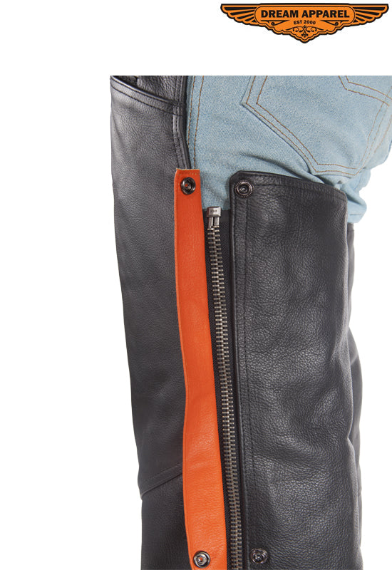 Black Leather Chaps With Orange Straps