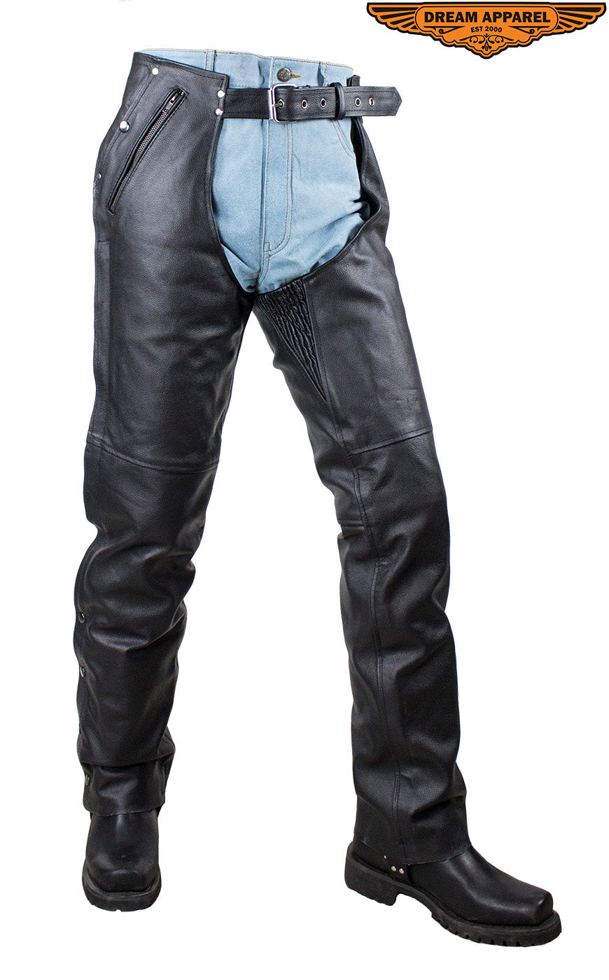 Dream Apparel Black Multi-Pocket Buffalo Hide Leather Chaps