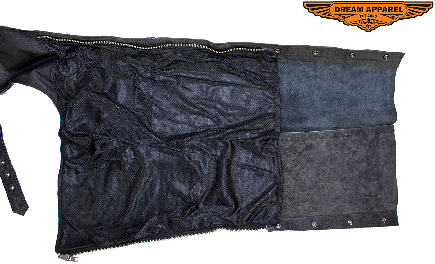 Braided Split Leather Chaps W/ Mesh Lining - Black