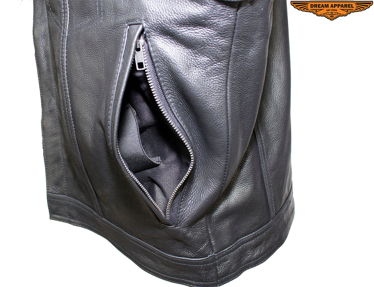 Cowhide Leather Motorcycle Club Vest - Defender Vest - Conceal Gun Pockets