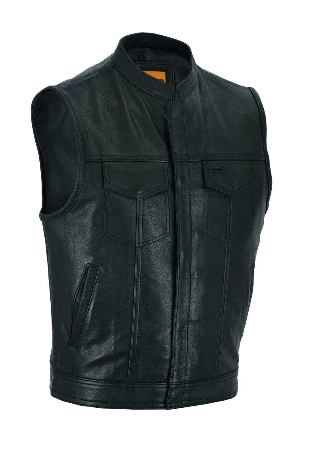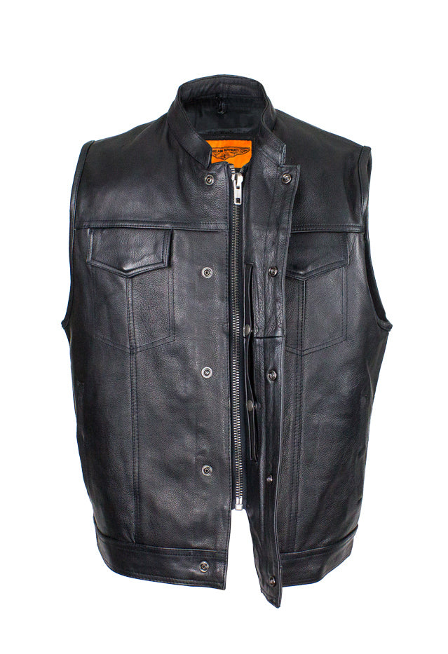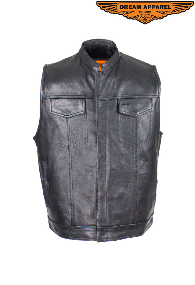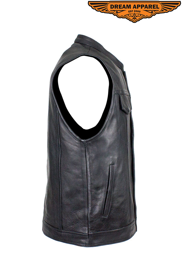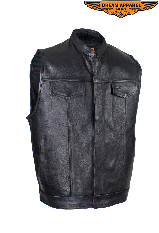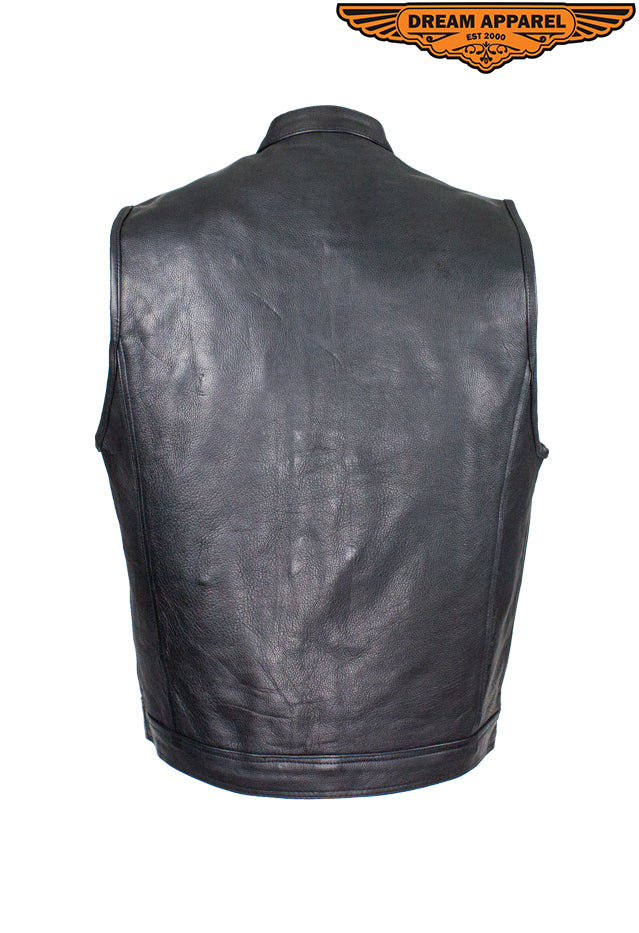 Dream Apparel Mens Motorcycle CLUB VEST Naked Cowhide Leather, Concealed Gun Pockets
