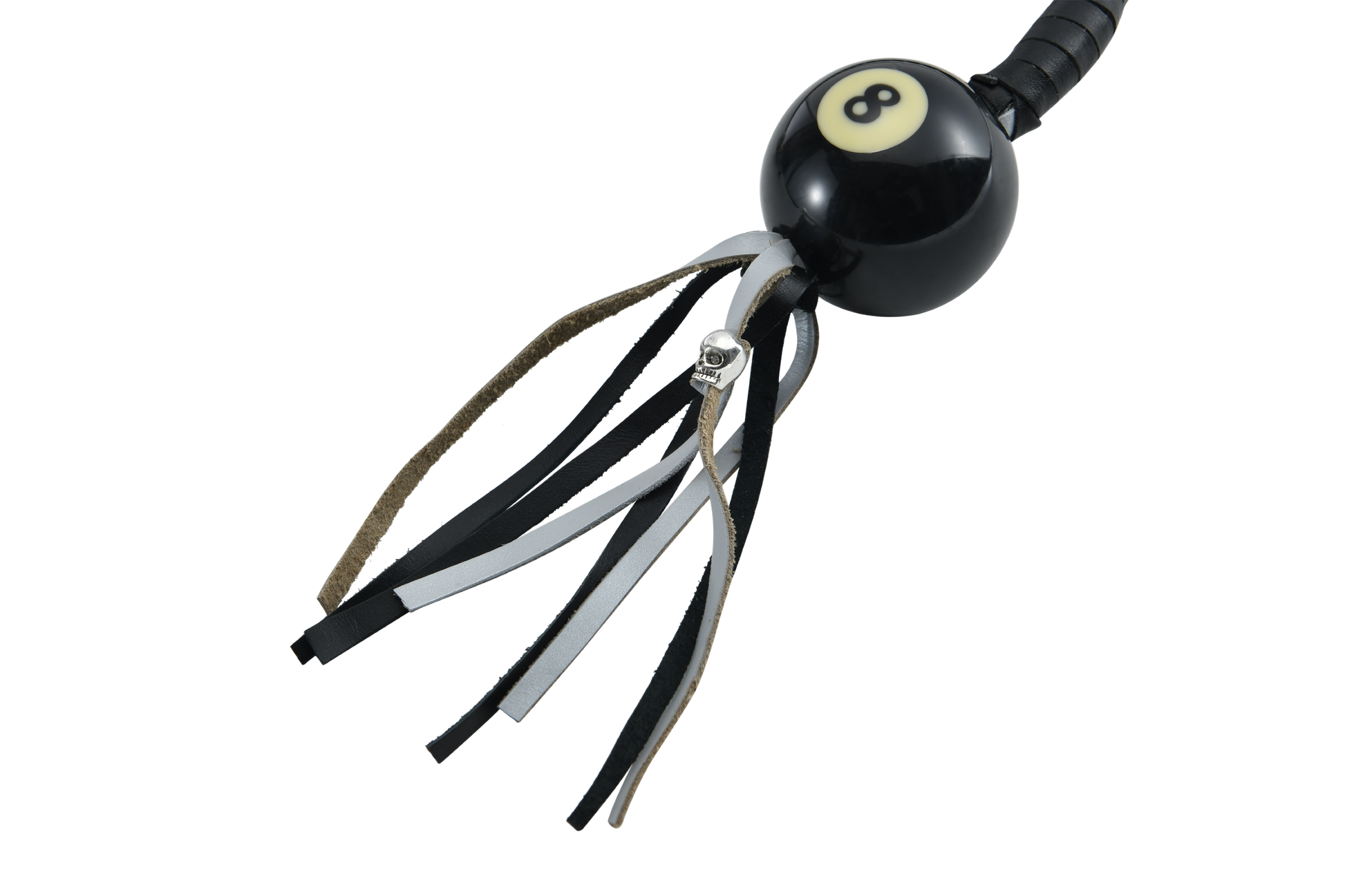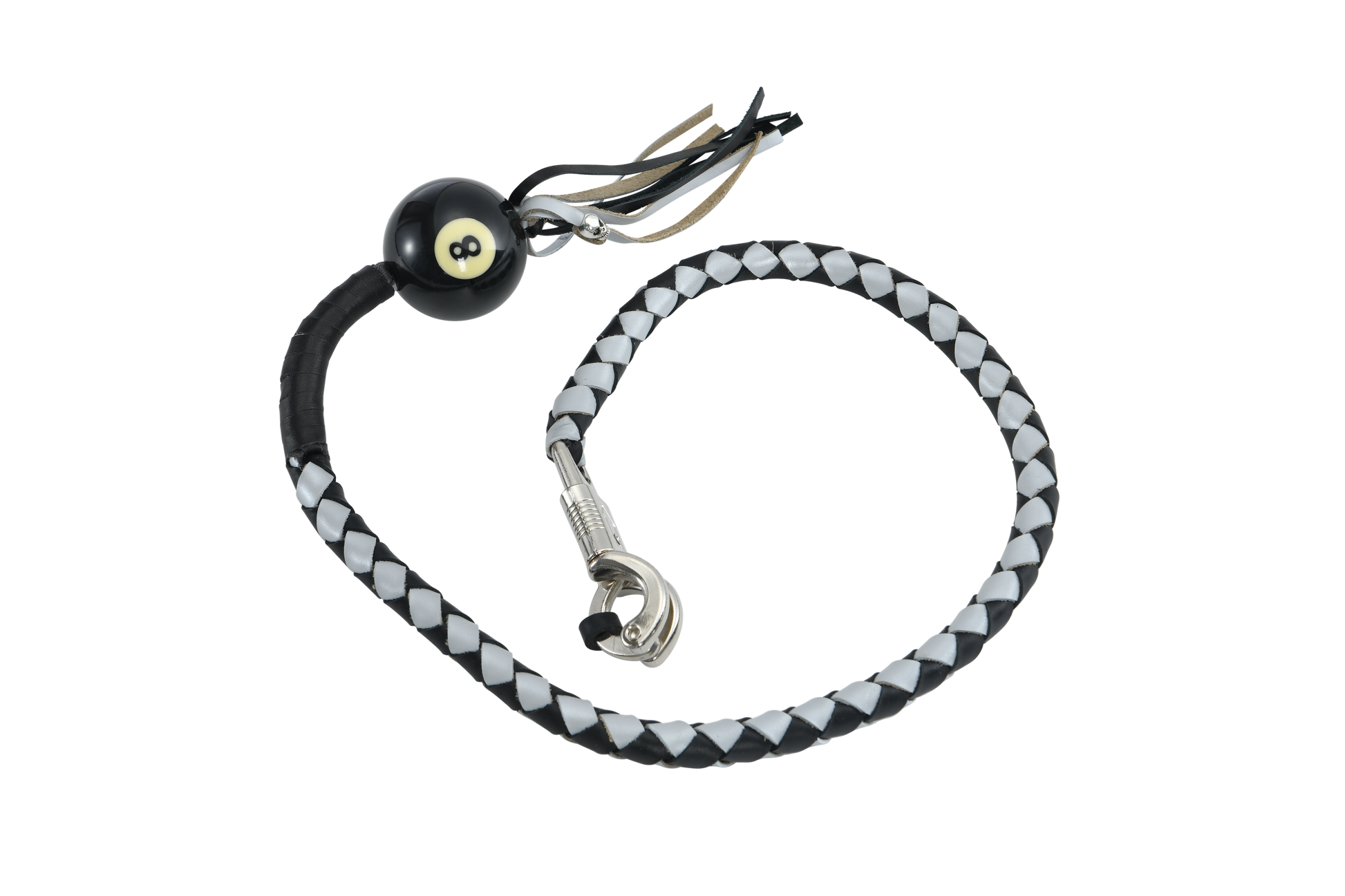 - Black And Silver Hand-Braided Leather Get back Whips with Ball-8, 42" Long