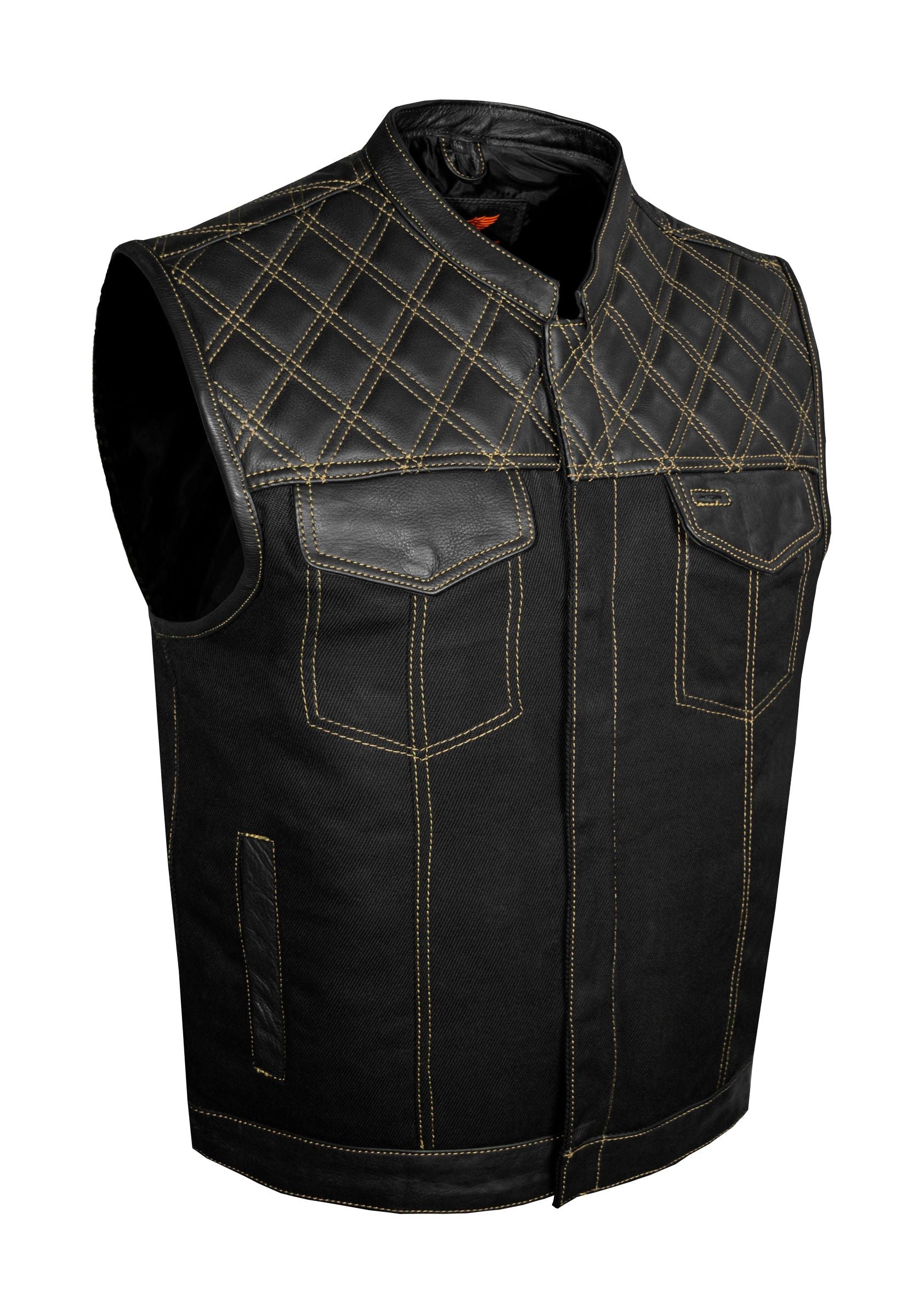 - Mens Motorcycle Club Vest Diamond Padding, Gold Thread