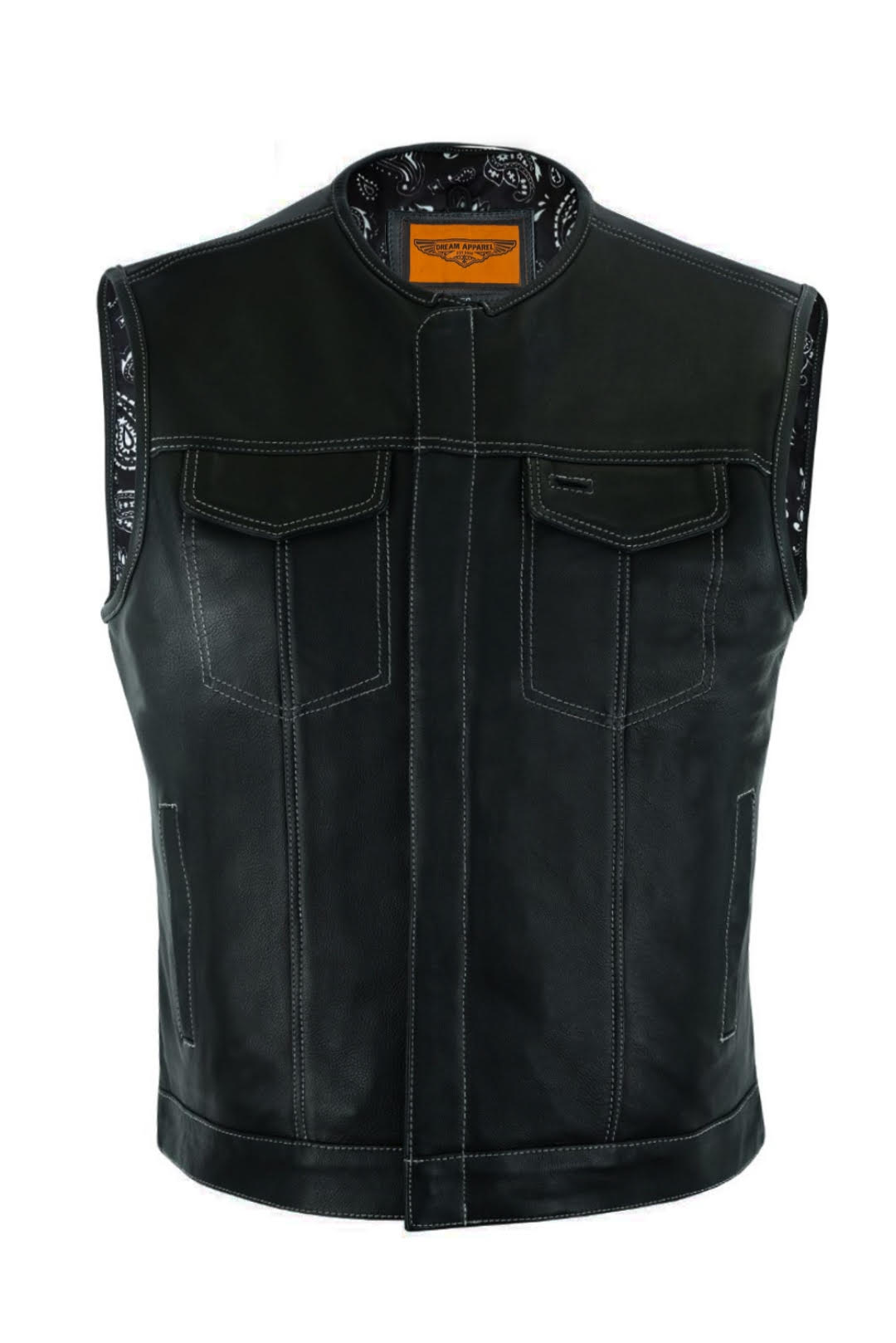 - Men's Motorcycle Club Vest with Paisley Lining Double White Thread Stitching