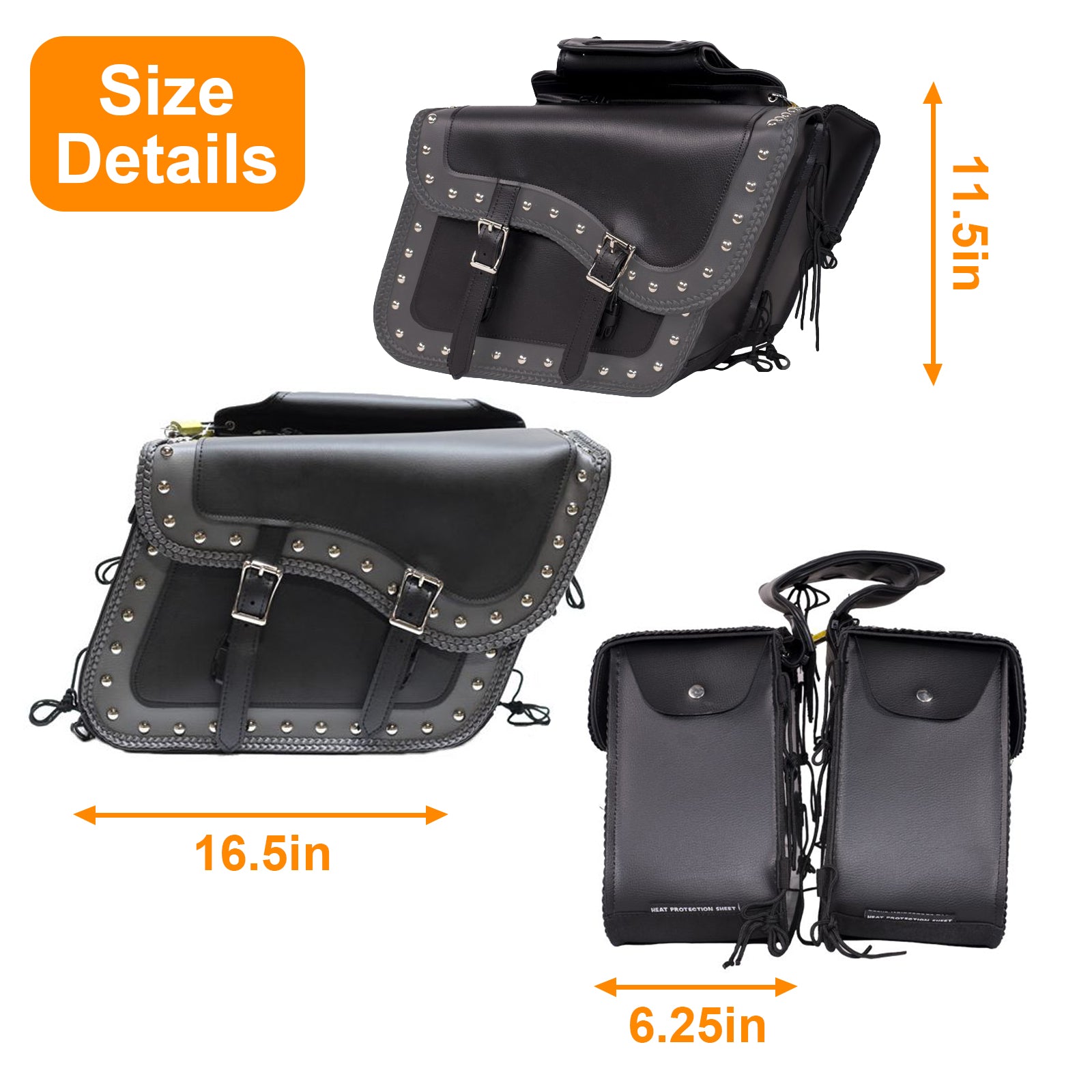 Dream Apparel PVC Motorcycle Saddlebag With Studs