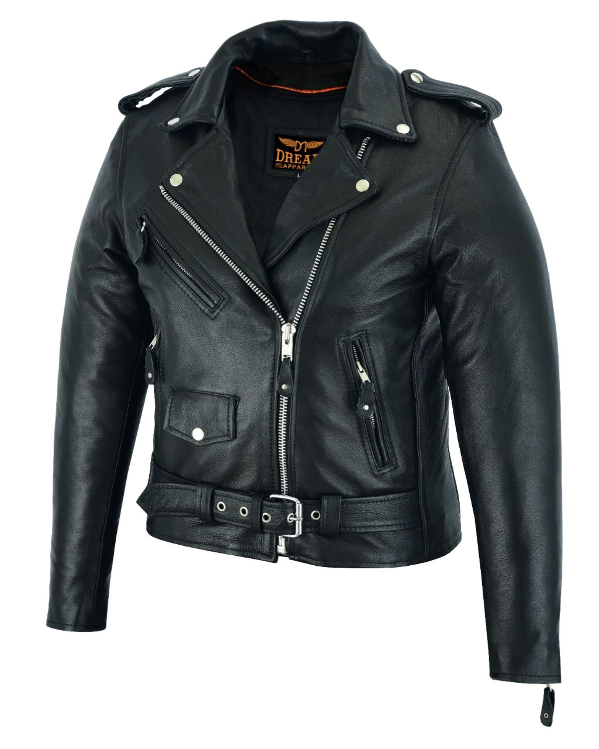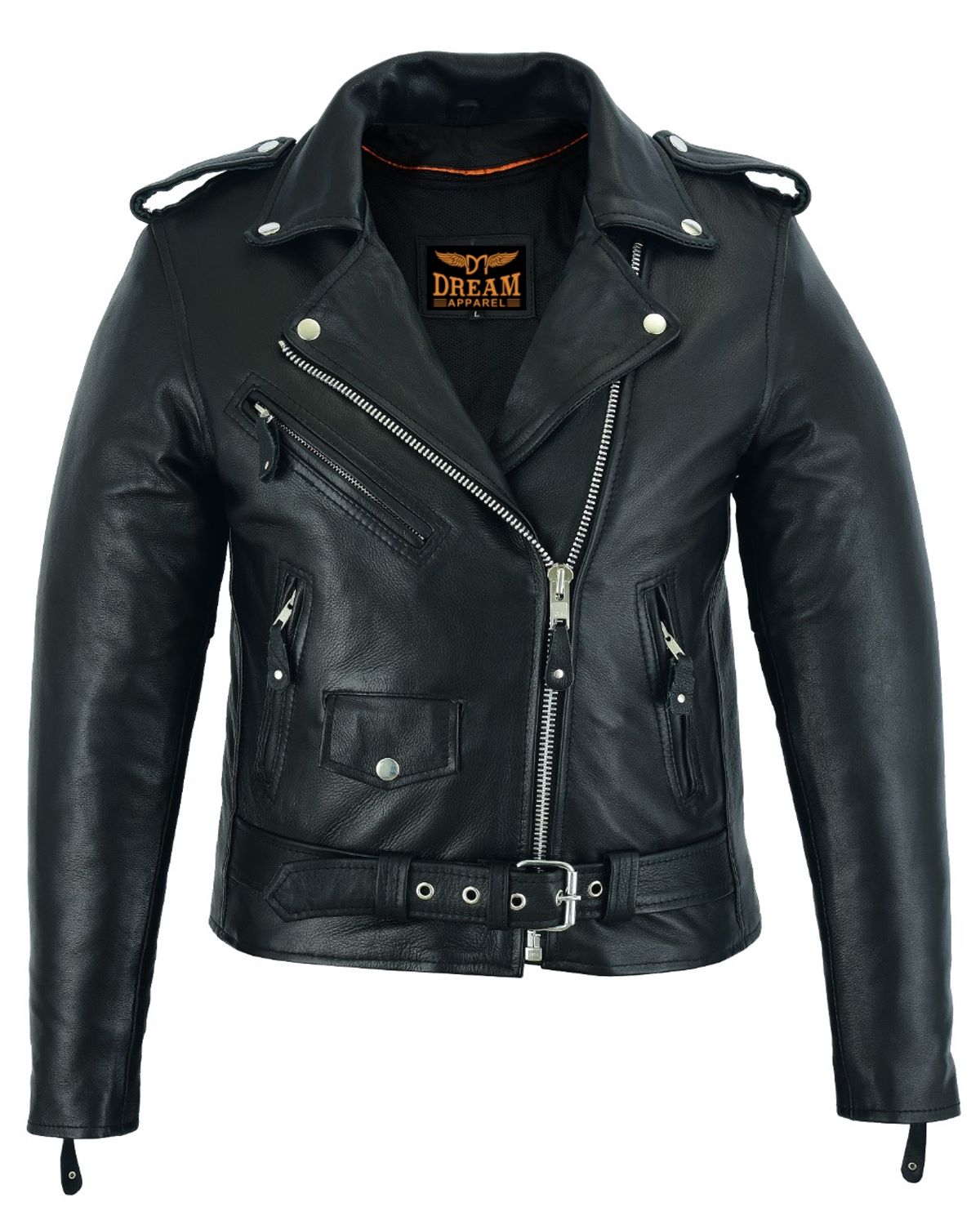 Dream Apparel Women Motorcycle Classic Leather Jacket Premium Cowhide Leather Silver Hardware