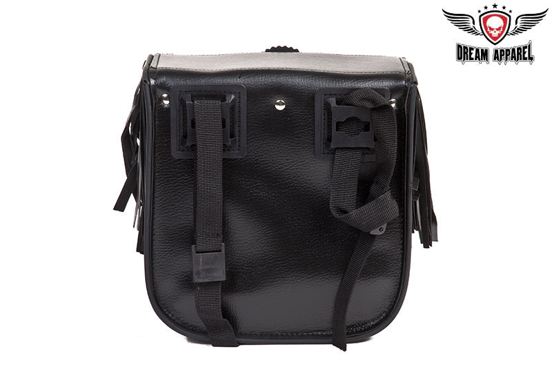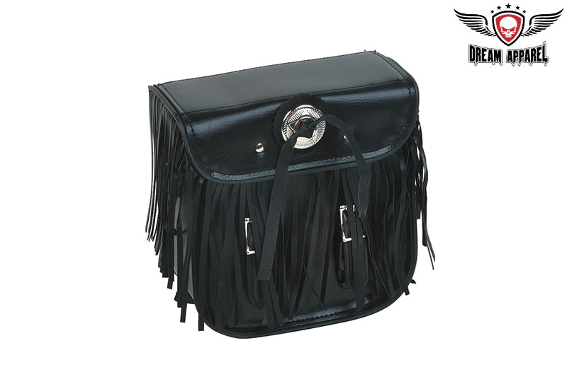 Leather Motorcycle Sissy Bar Bag With Fringes, & Concho