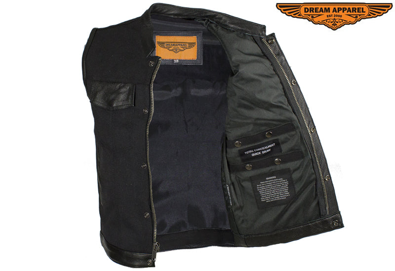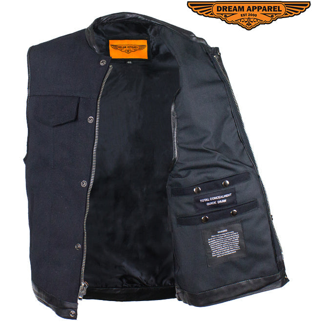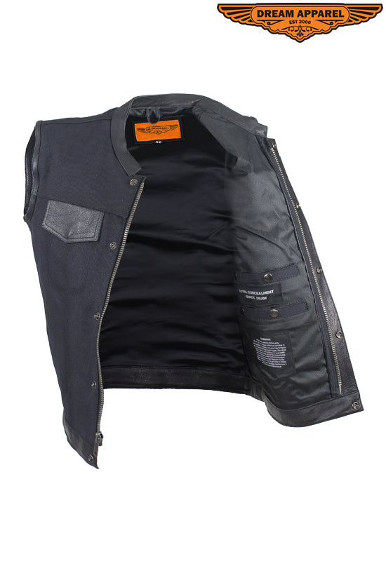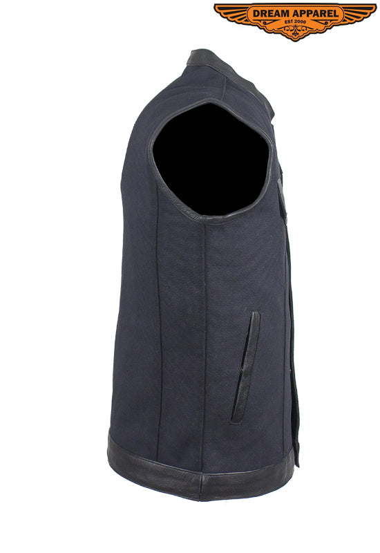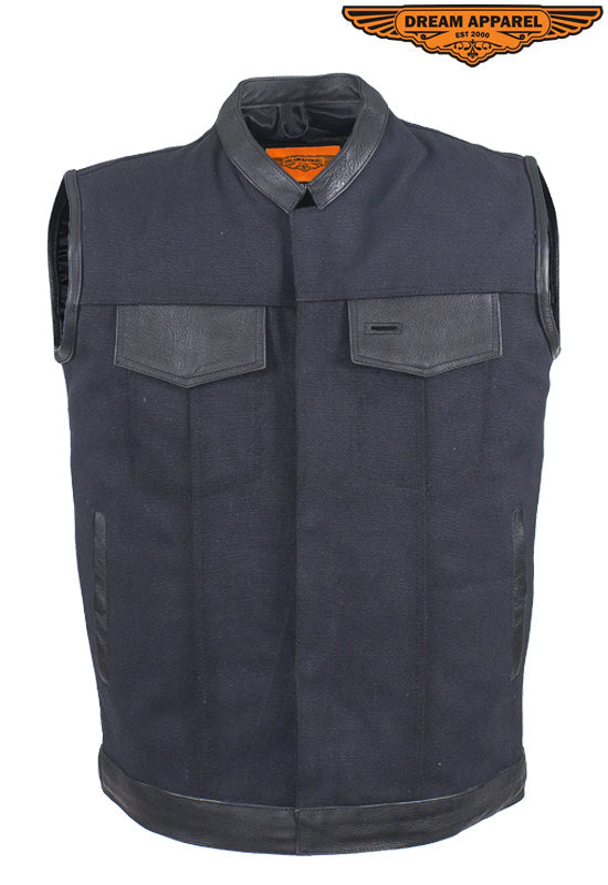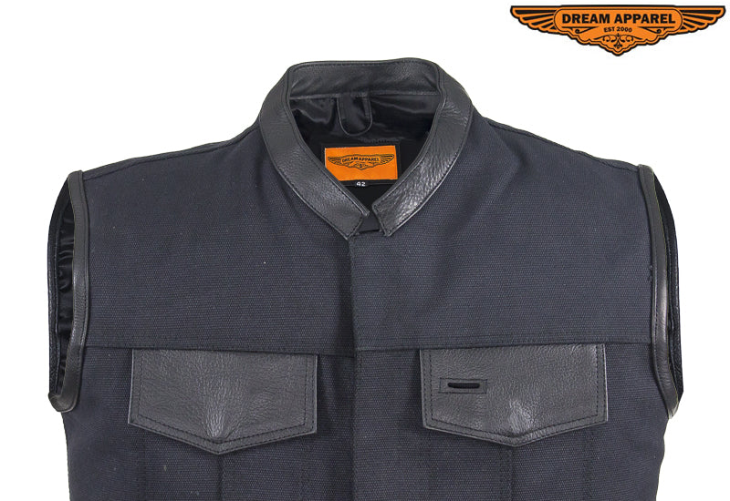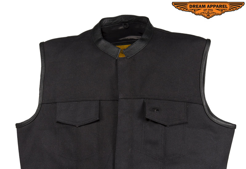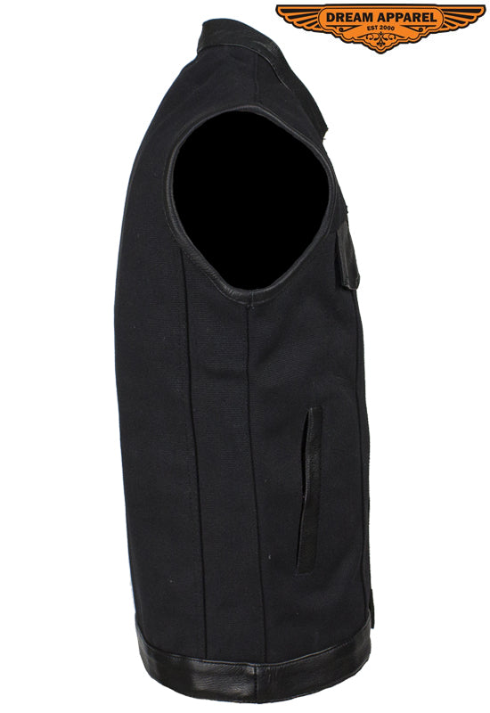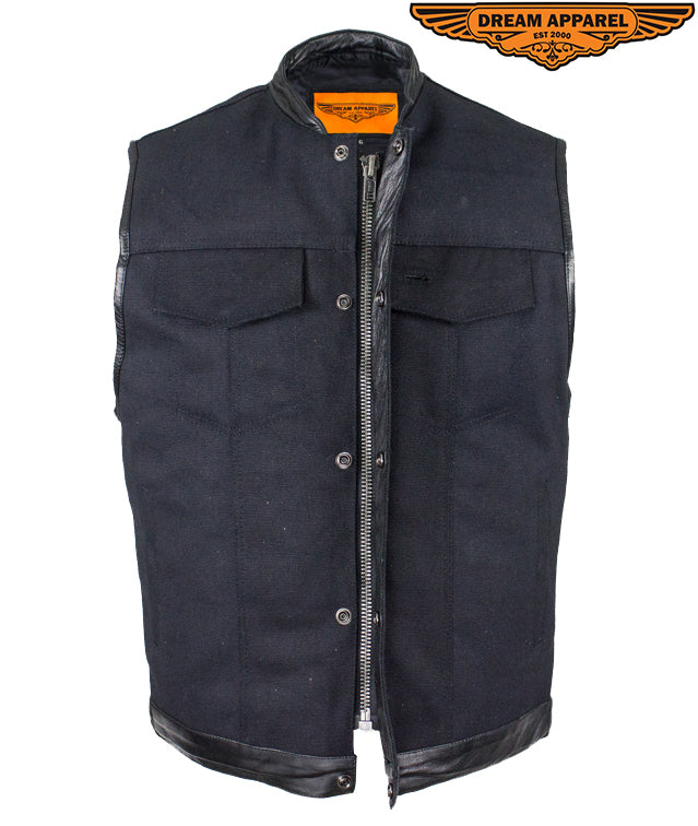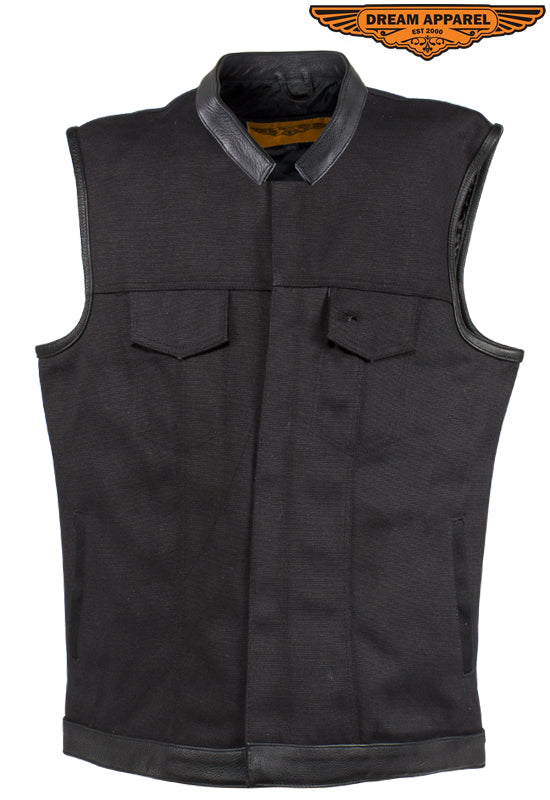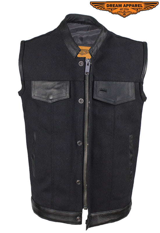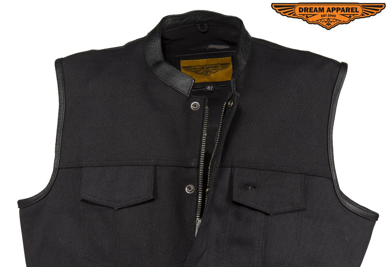 Mens Black Canvas CLUB VEST® with Zipper and Snaps on Front
