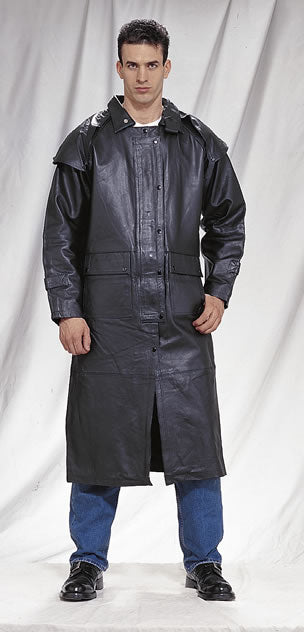 Men's Black Duster W/ Removable Pig Skin Leather Cape