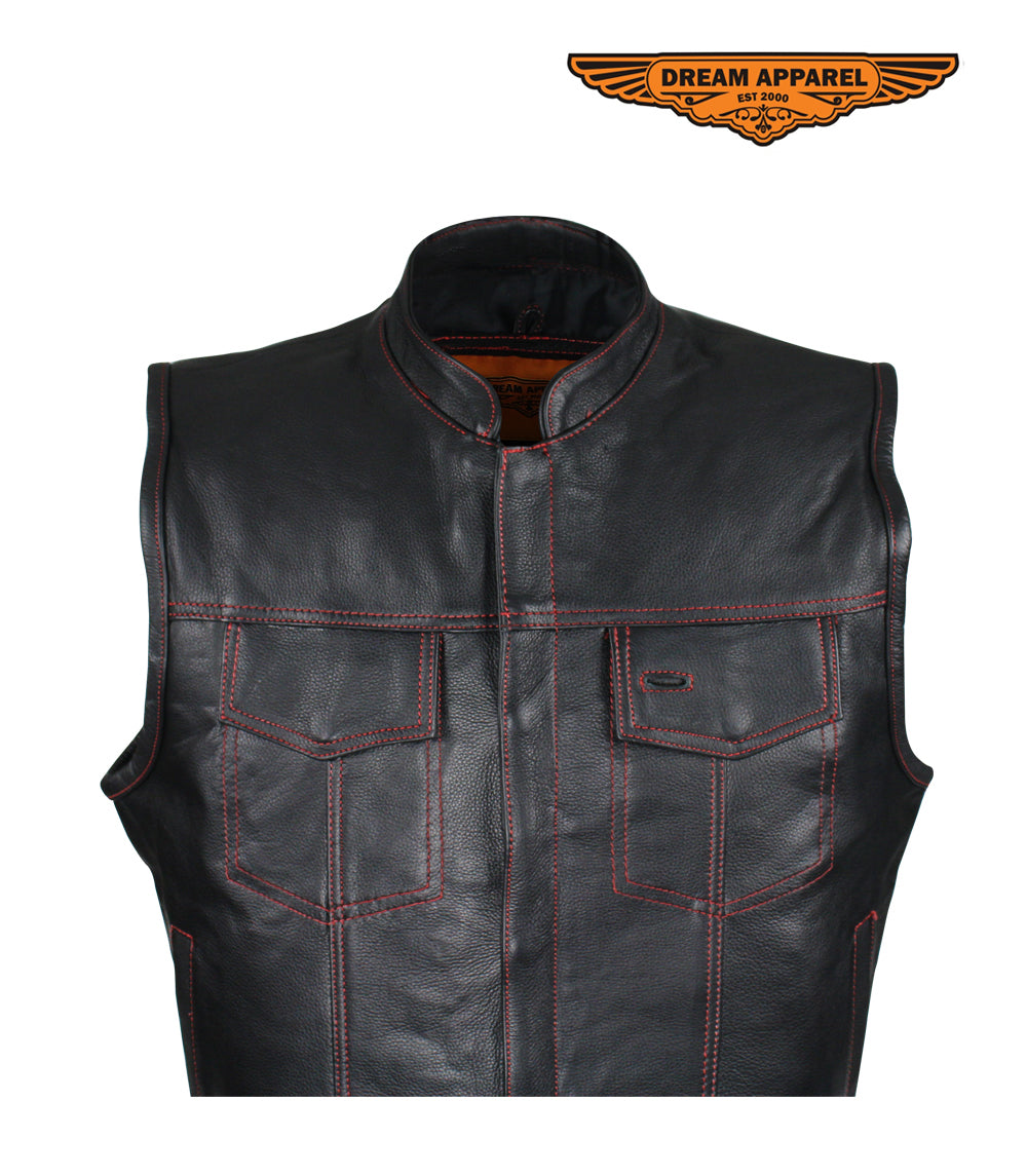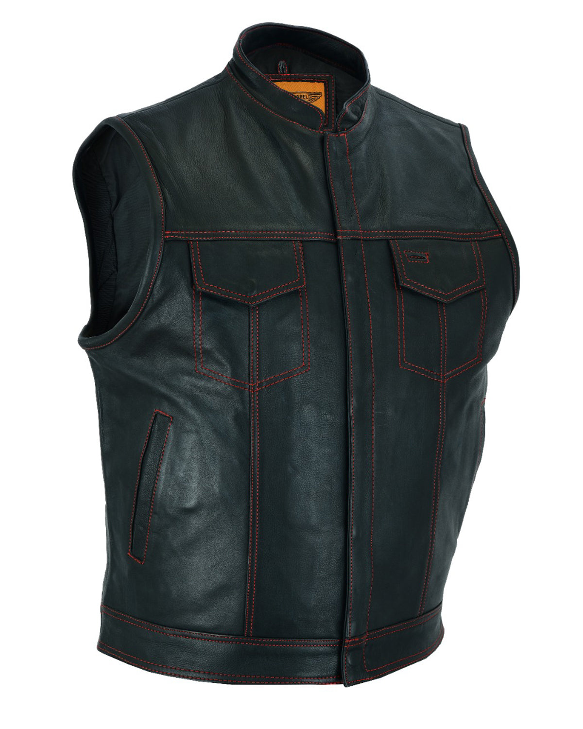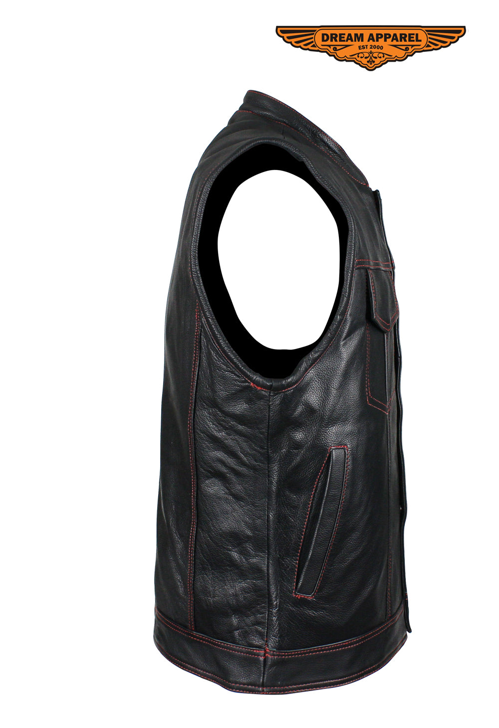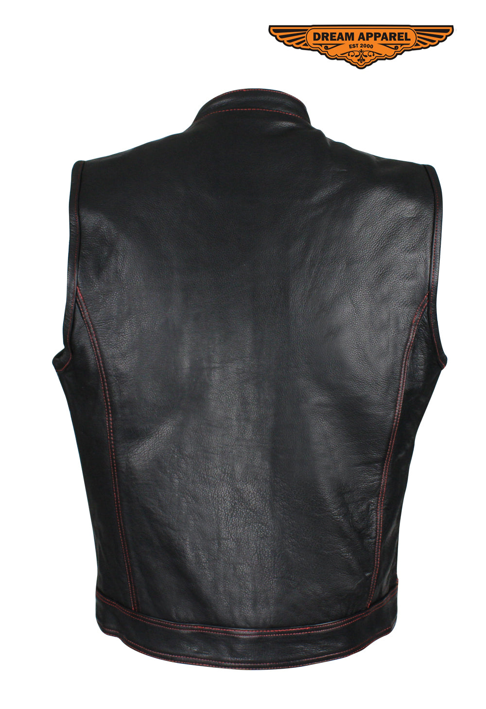 Men's Black Premium Naked Cowhide Leather CLUB VEST with Red Stitching
