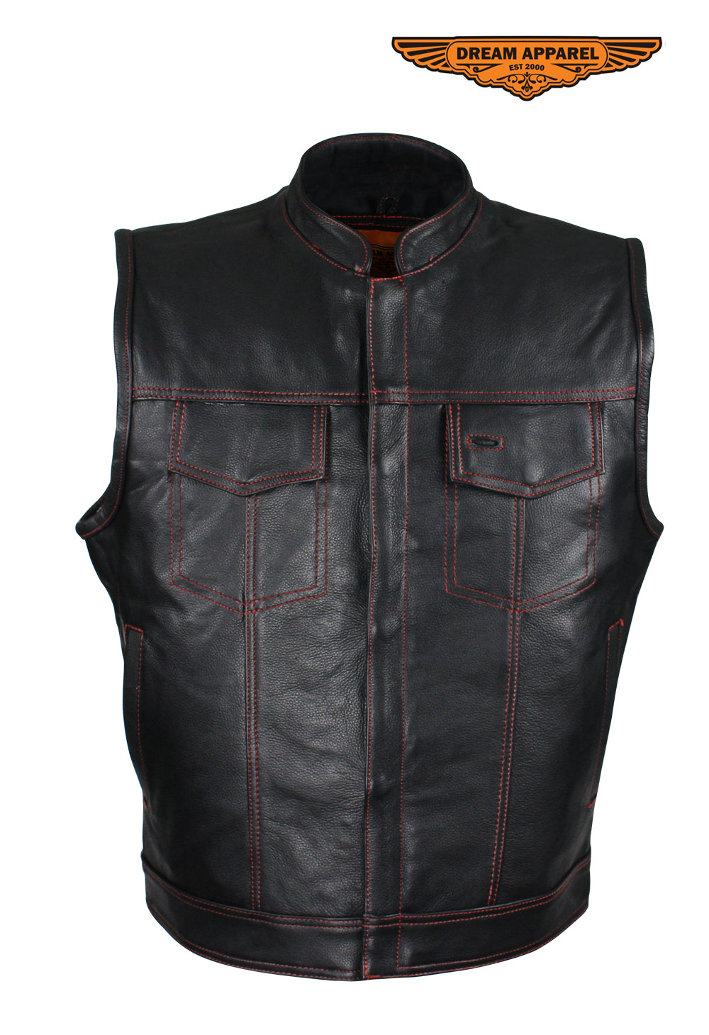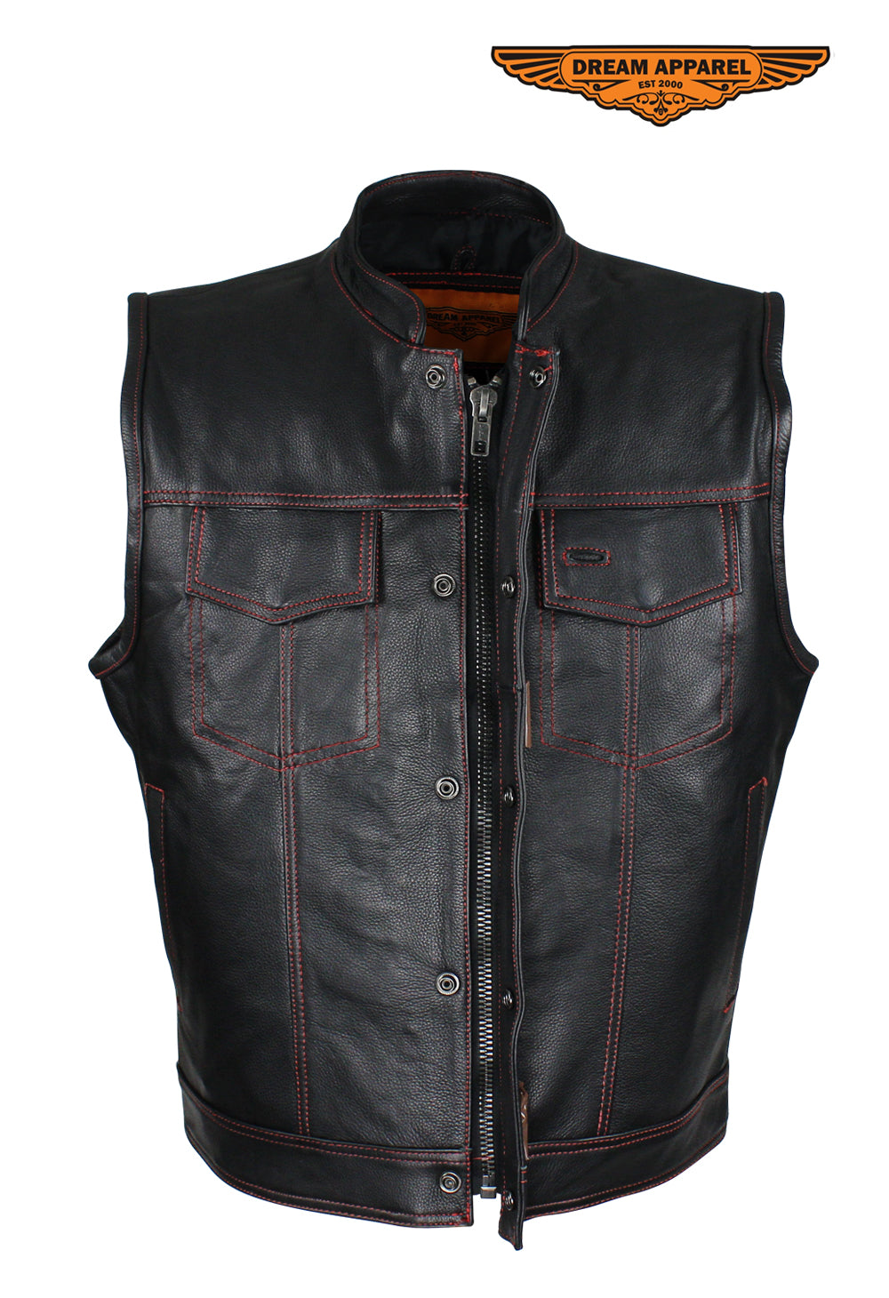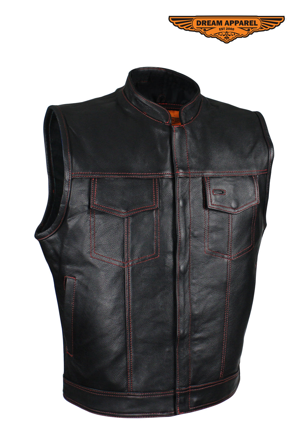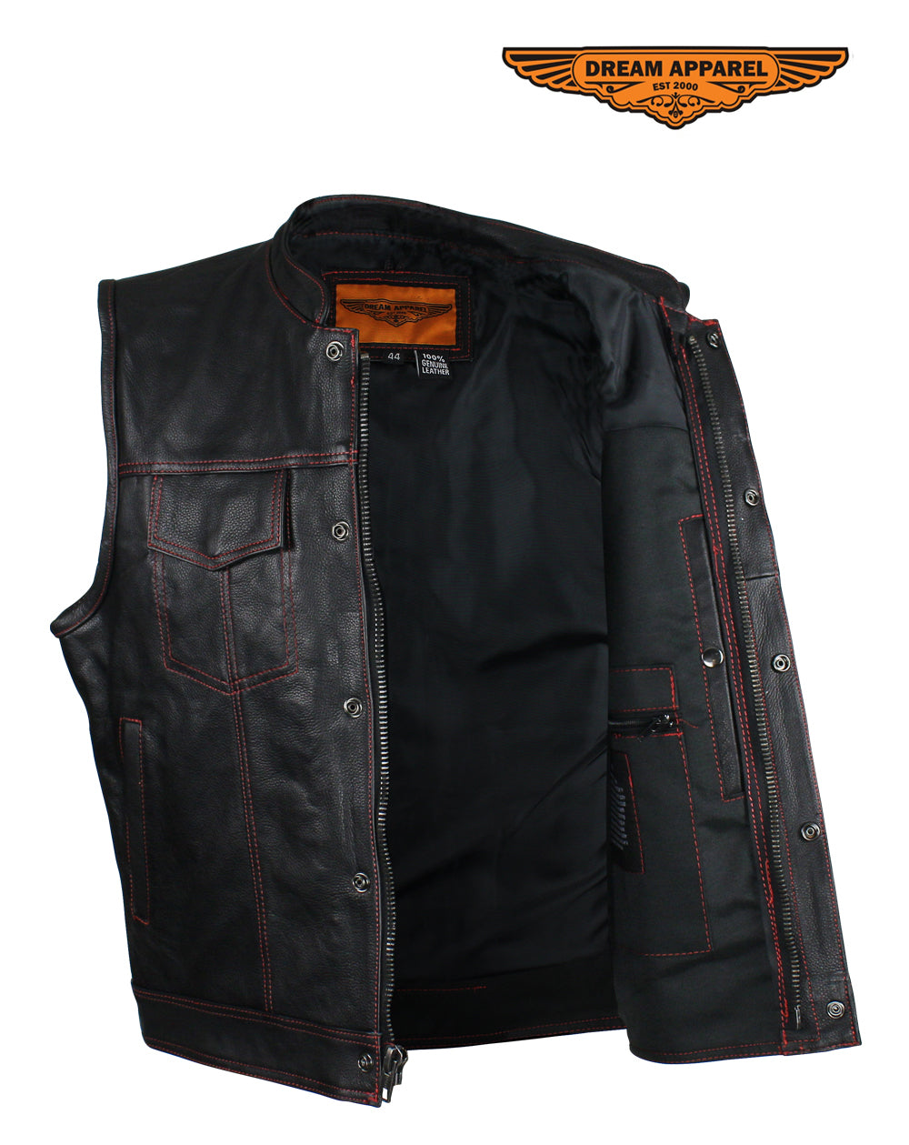 Men's Black Premium Naked Cowhide Leather CLUB VEST with Red Stitching