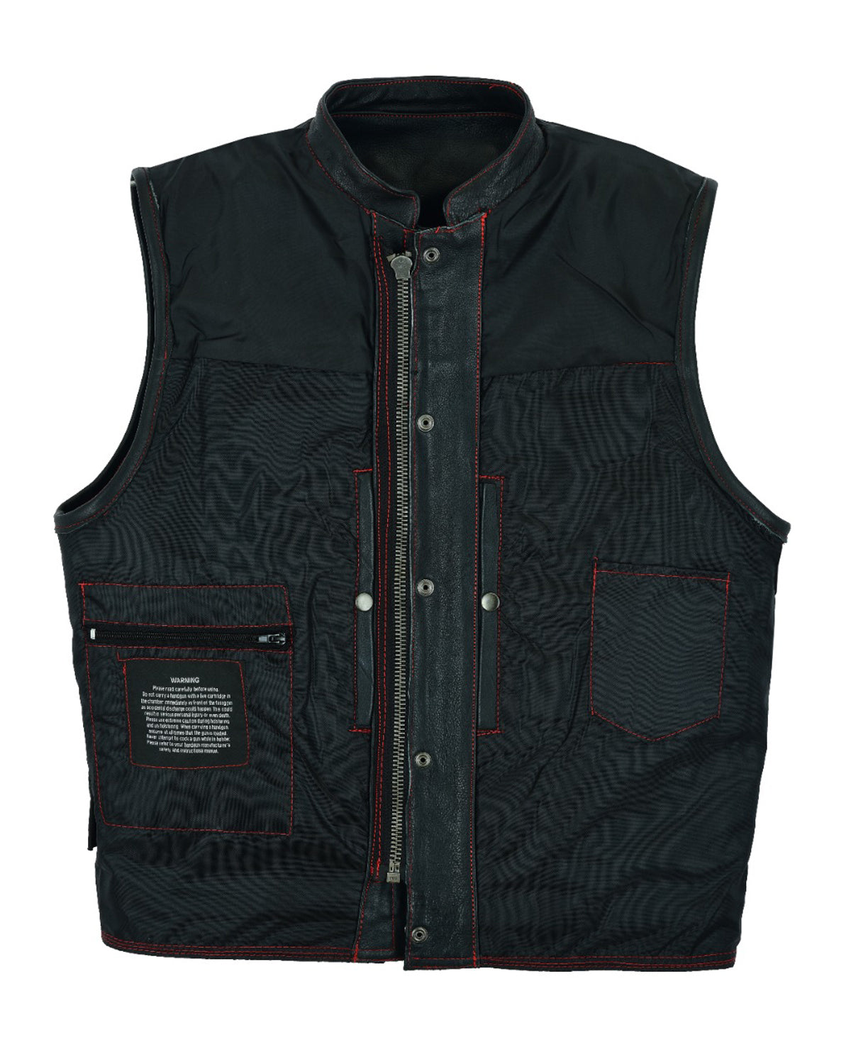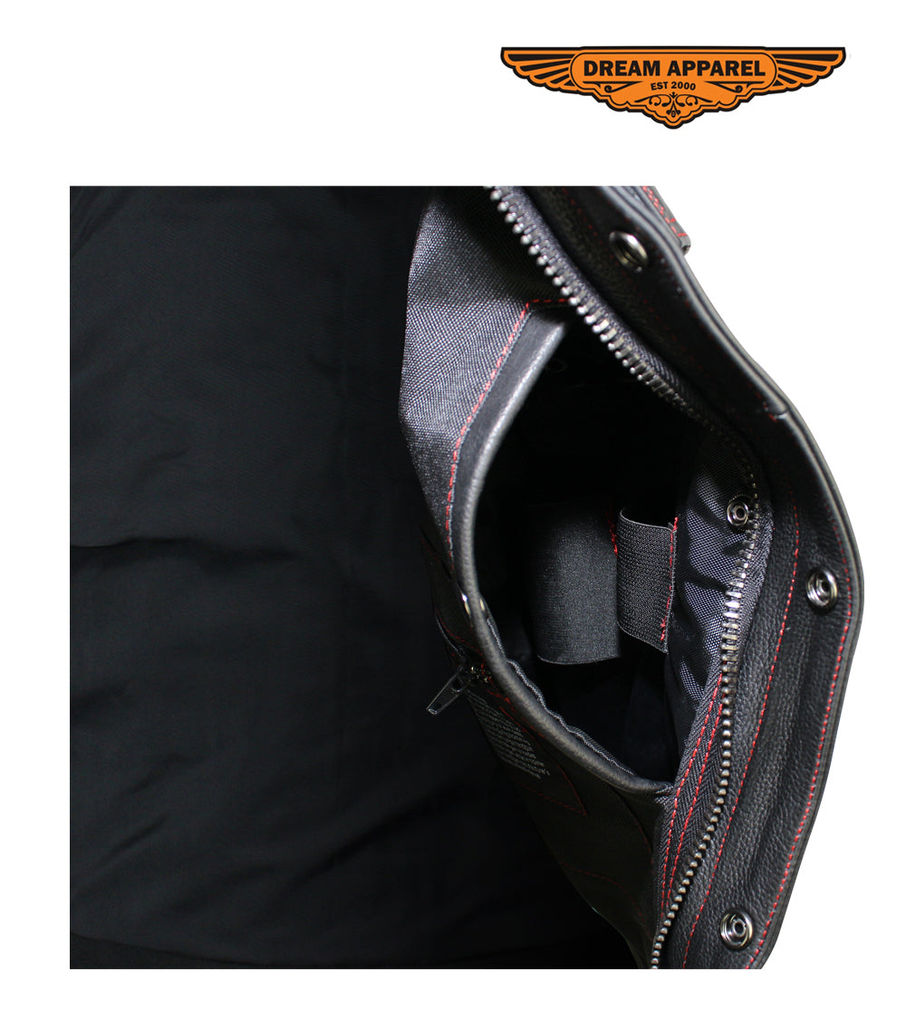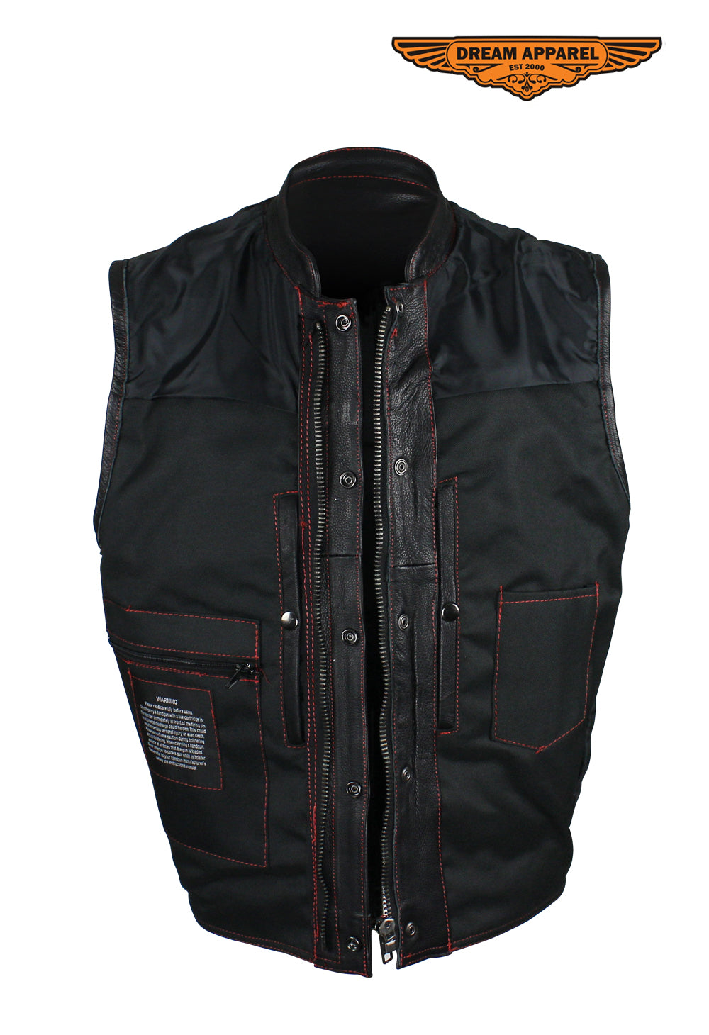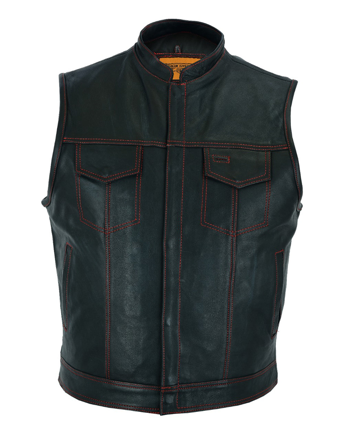 Men's Black Premium Naked Cowhide Leather CLUB VEST with Red Stitching