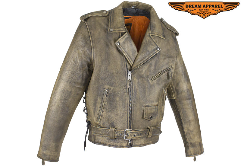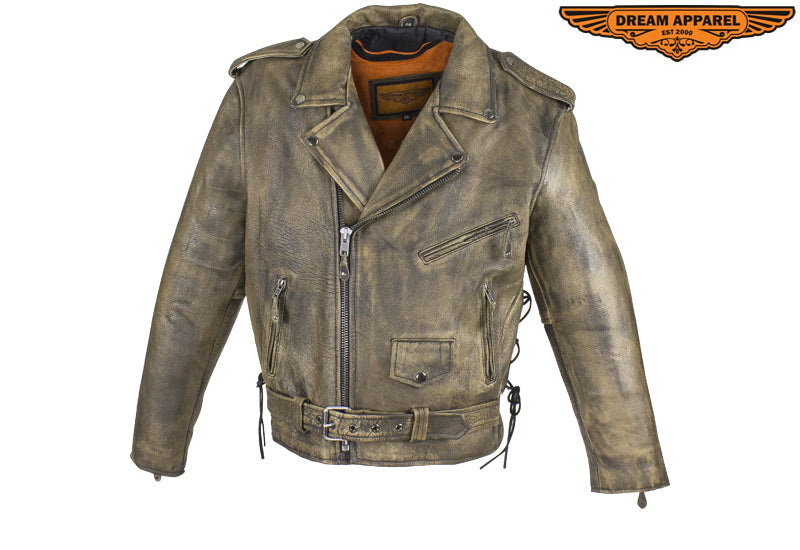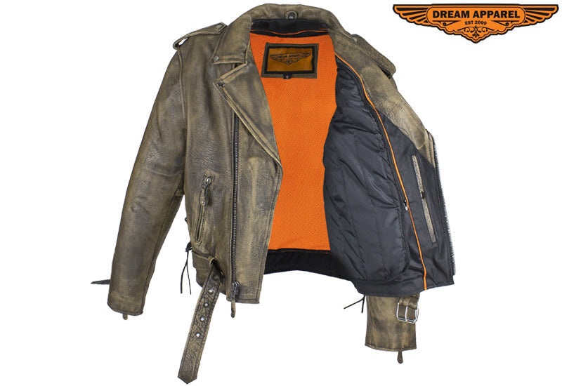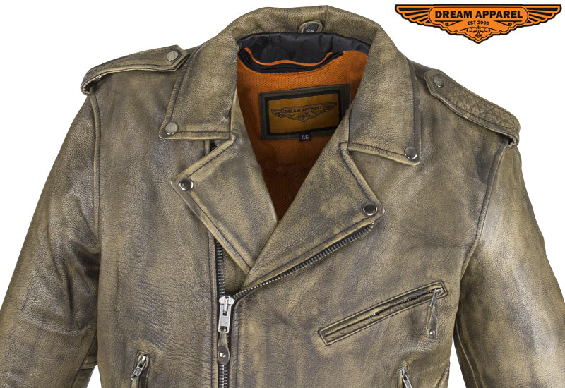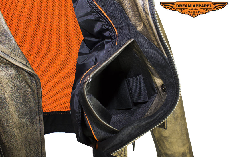 Men's Brown Motorcycle Jacket with Gun Pockets