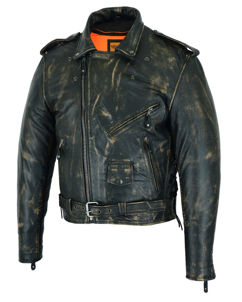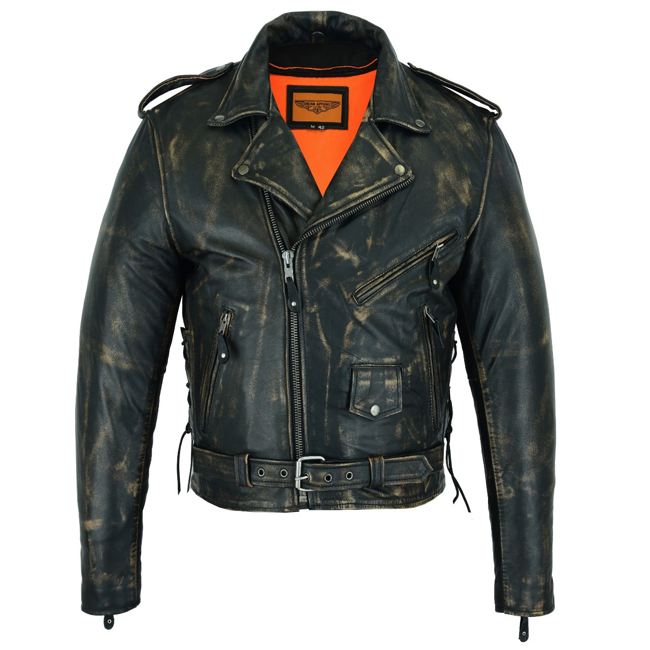 Dream Apparel Men's Distressed Brown Motorcycle Jacket with Conceal Carry Pockets
