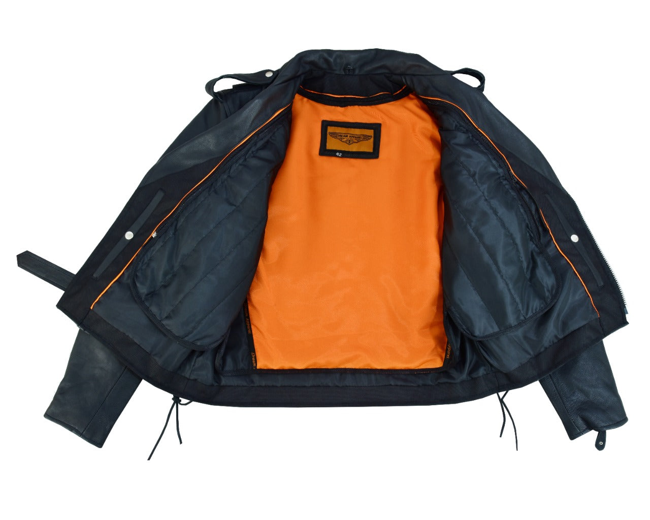 Mens Classic Police Style Motorcycle Jacket Side Laces Premium Cowhide Leather