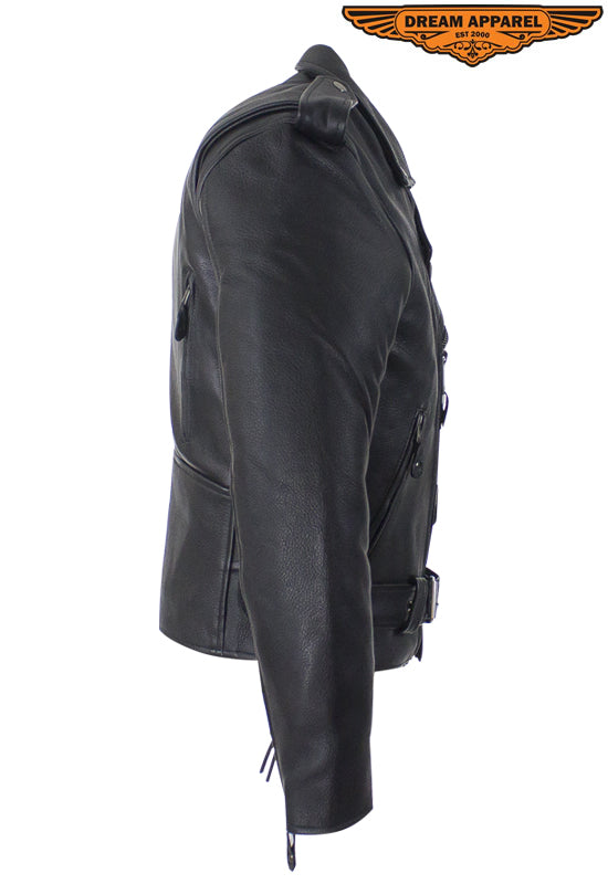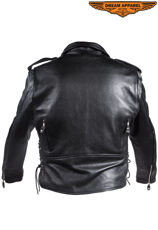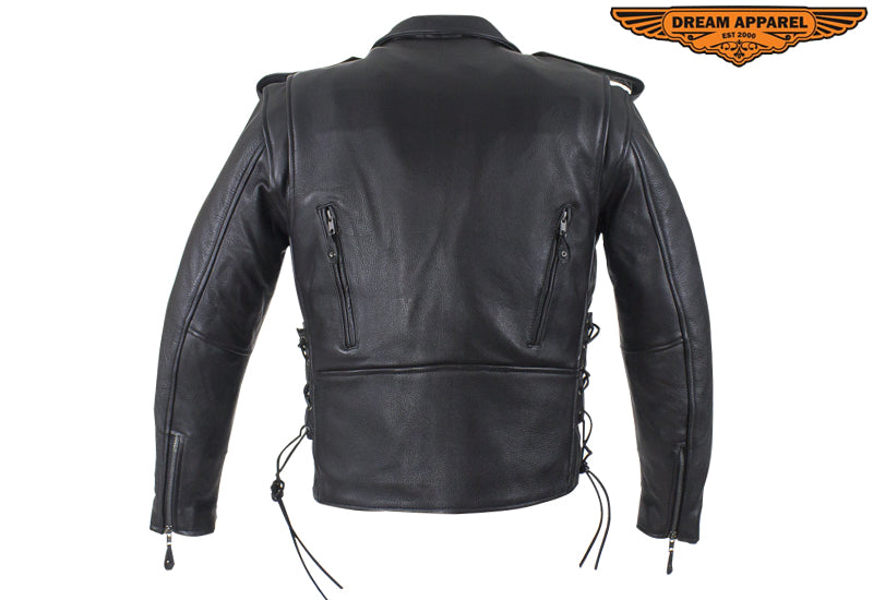 Mens Classic Police Style Motorcycle Jacket With Side Laces
