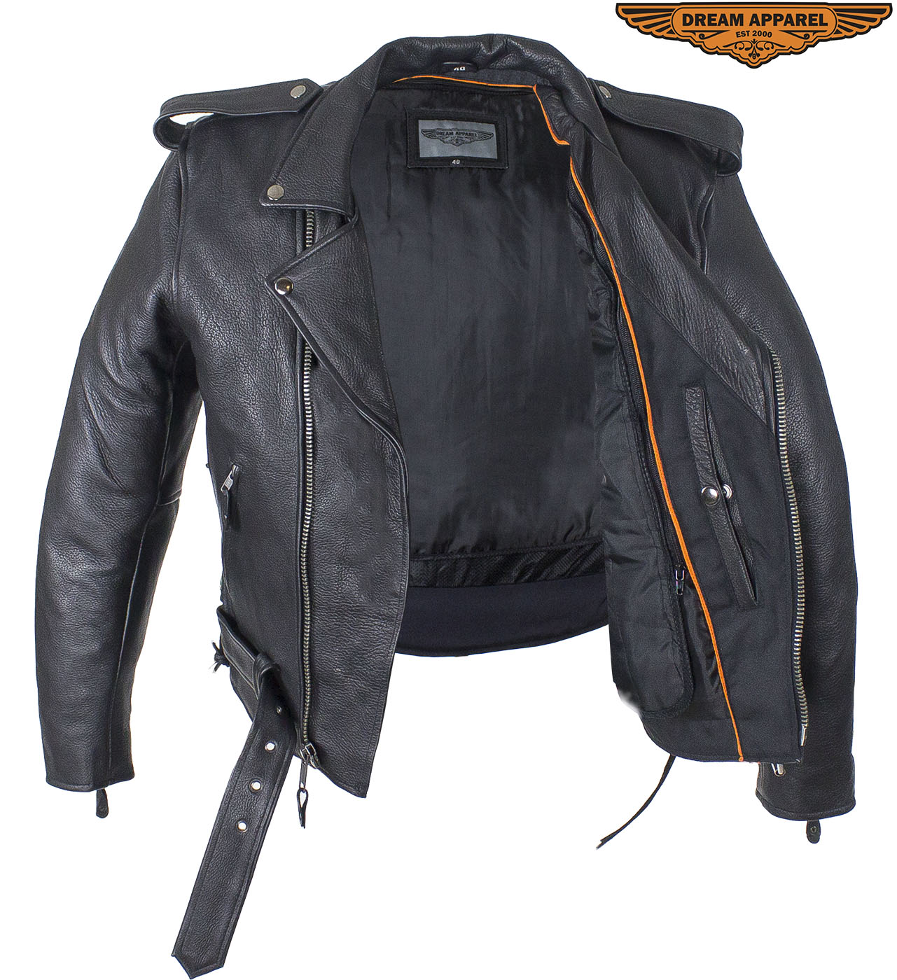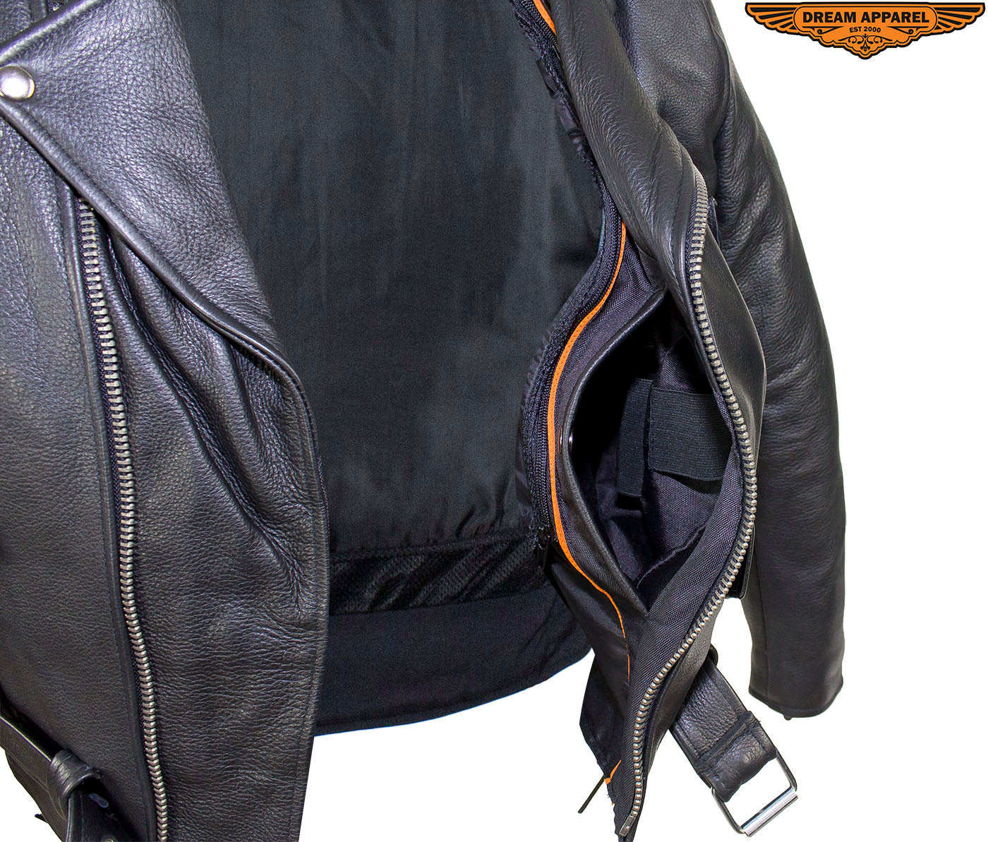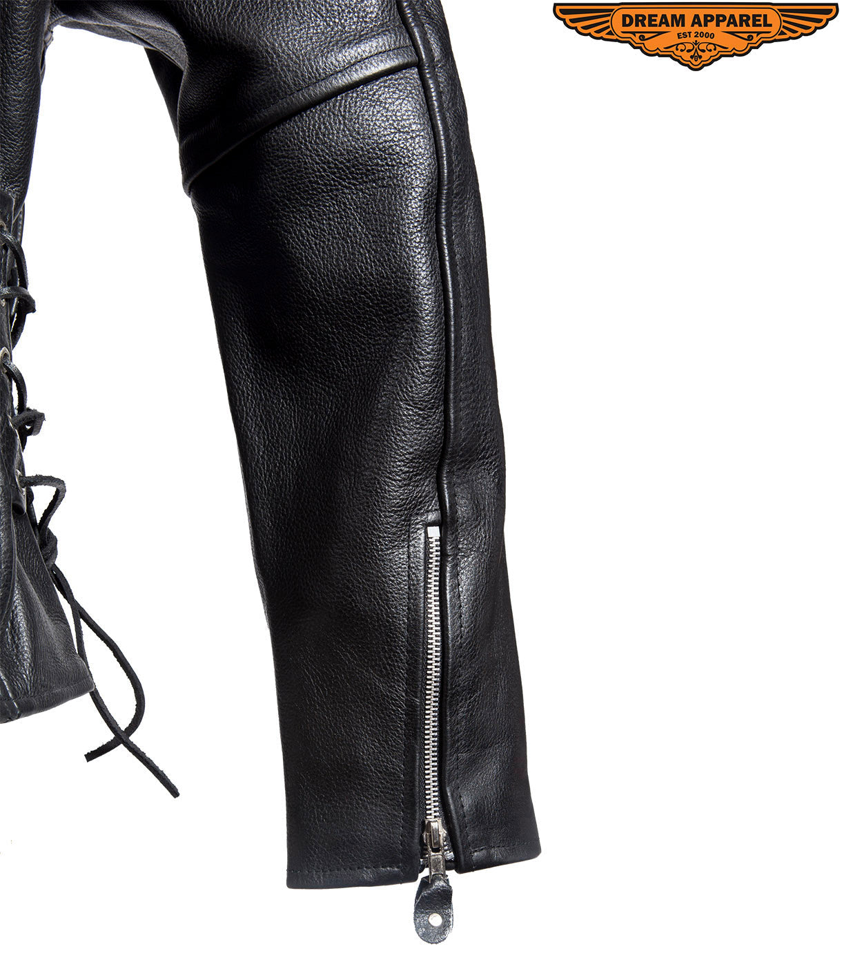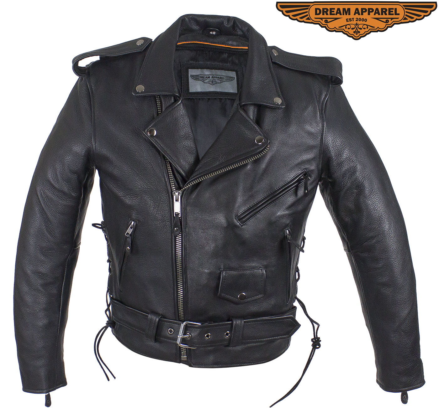 Mens Classic Police Style Motorcycle Jacket With Side Laces, Conceal Carry Gun Pockets Zipout Lining