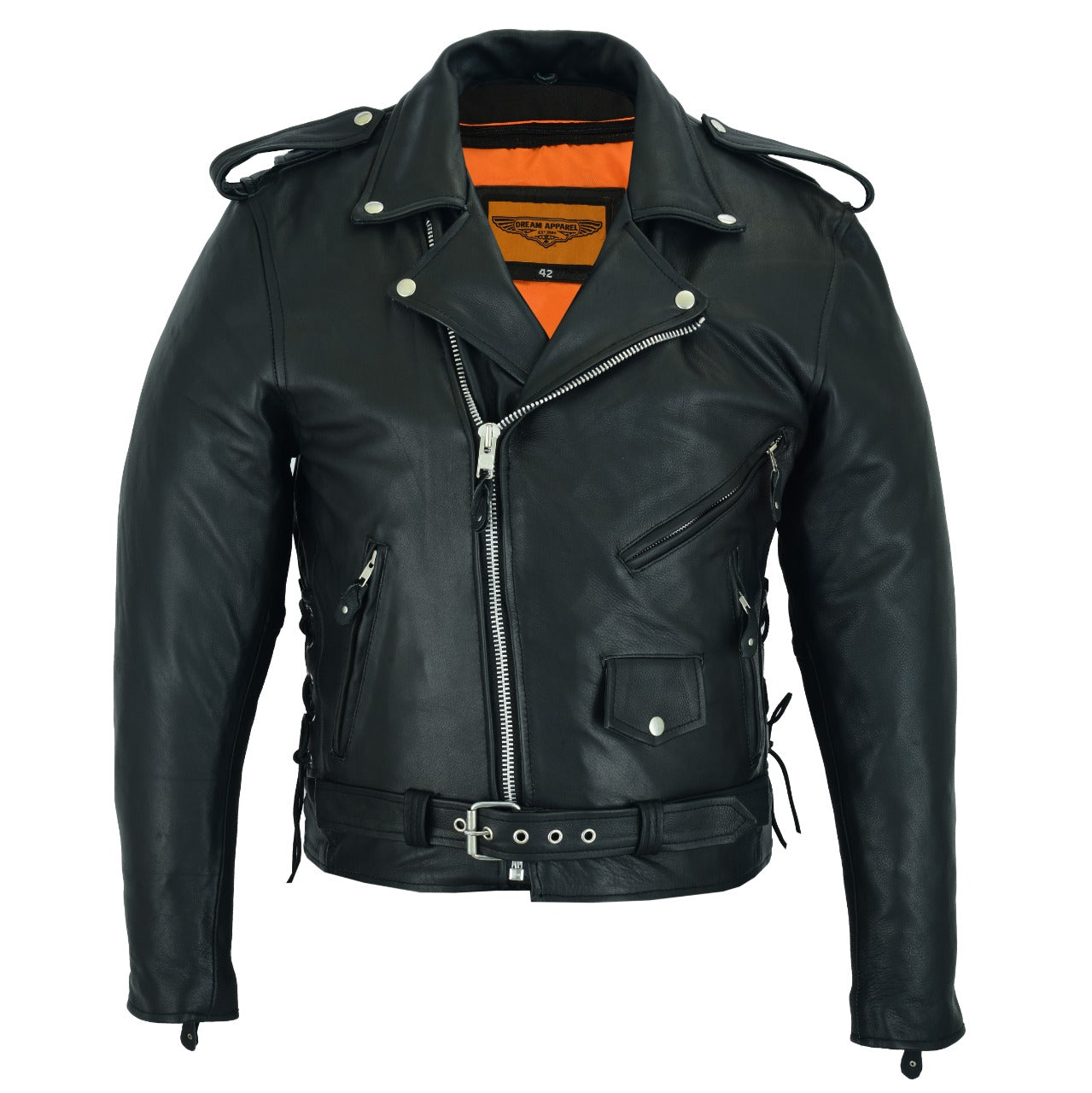 Dream Apparel Mens Classic Police Style Motorcycle Jacket With Side Laces Silver Hardware