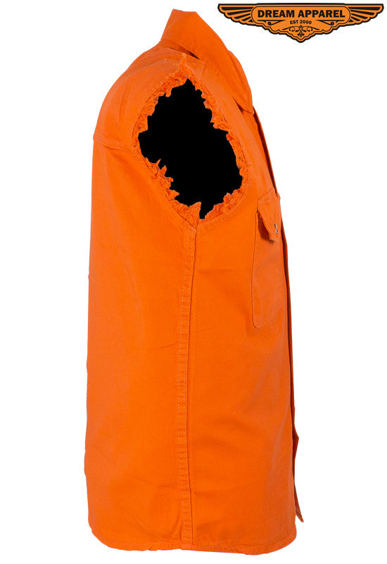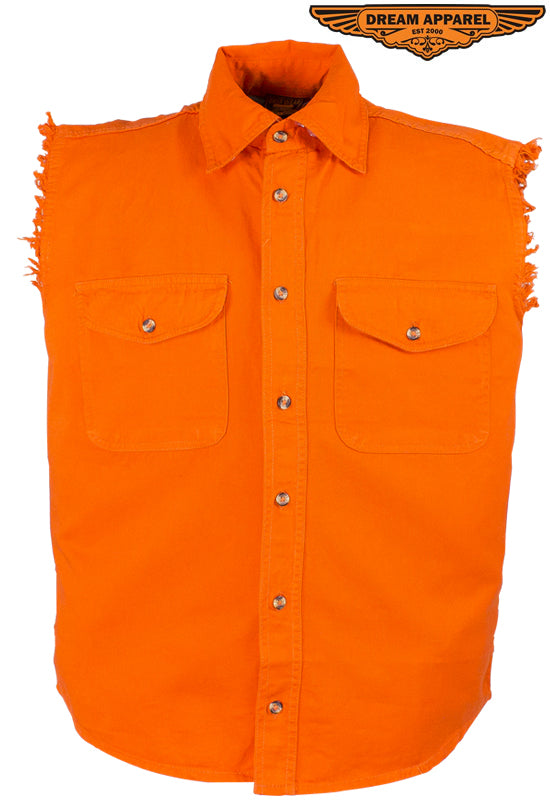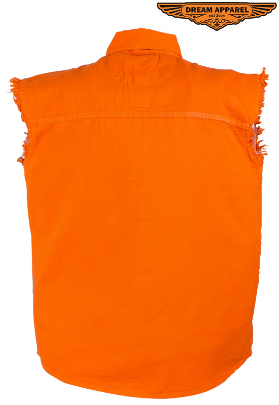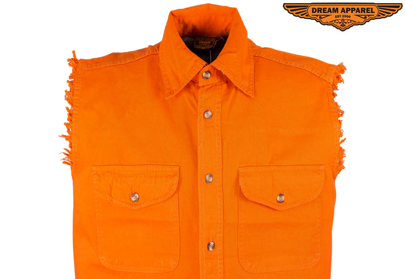 Mens Denim Orange Sleeveless Shirt