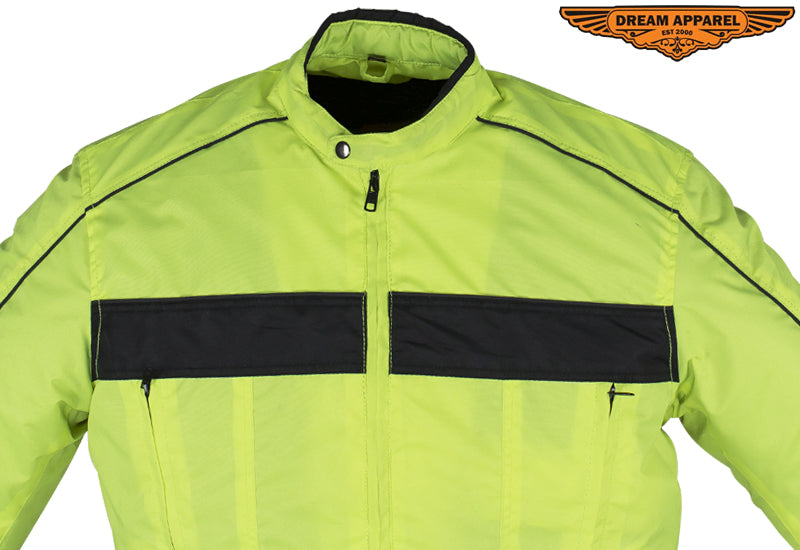 Men's Fluorescent Water Resistant Jacket with Reflective Piping