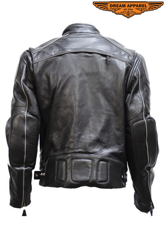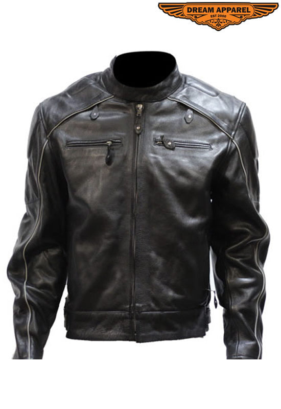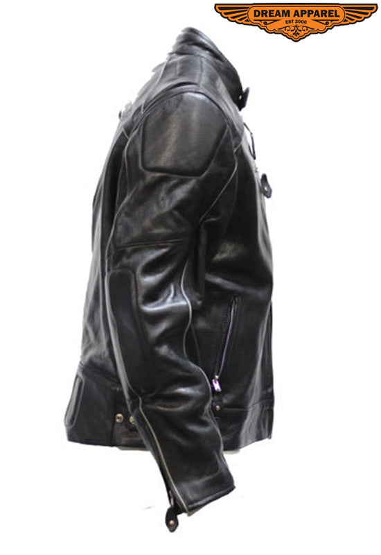 Mens Leather Jacket With Racer Collar