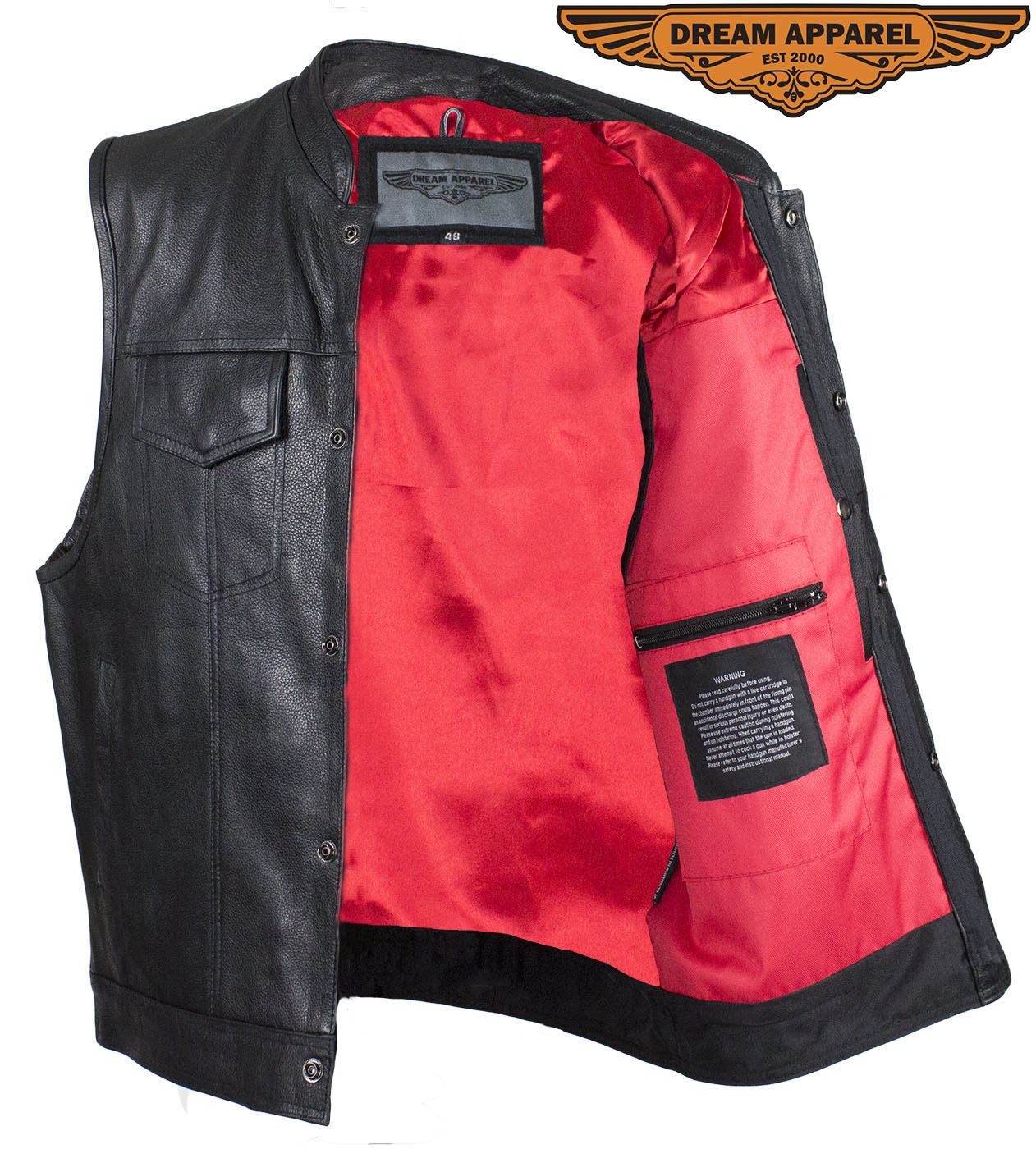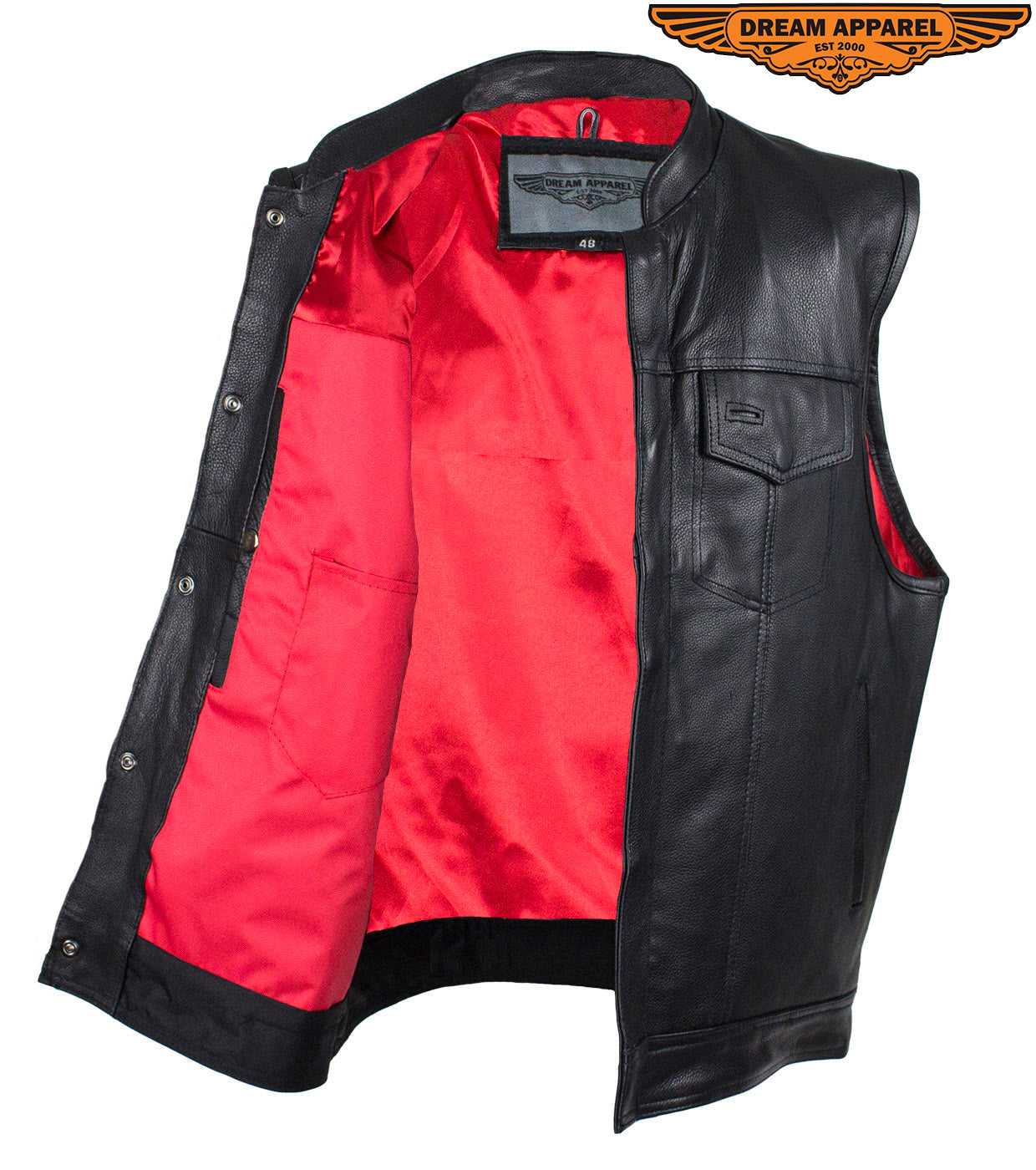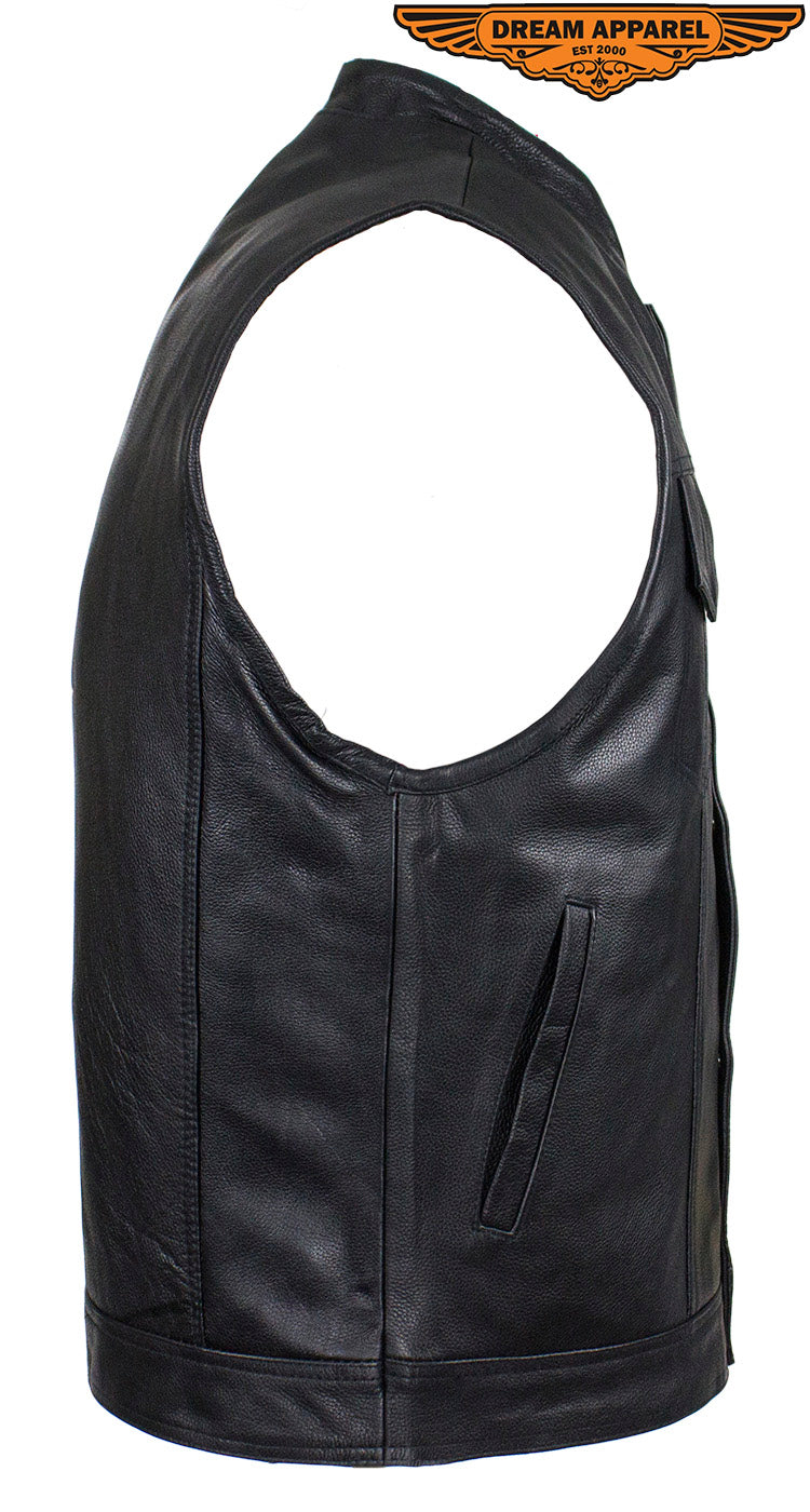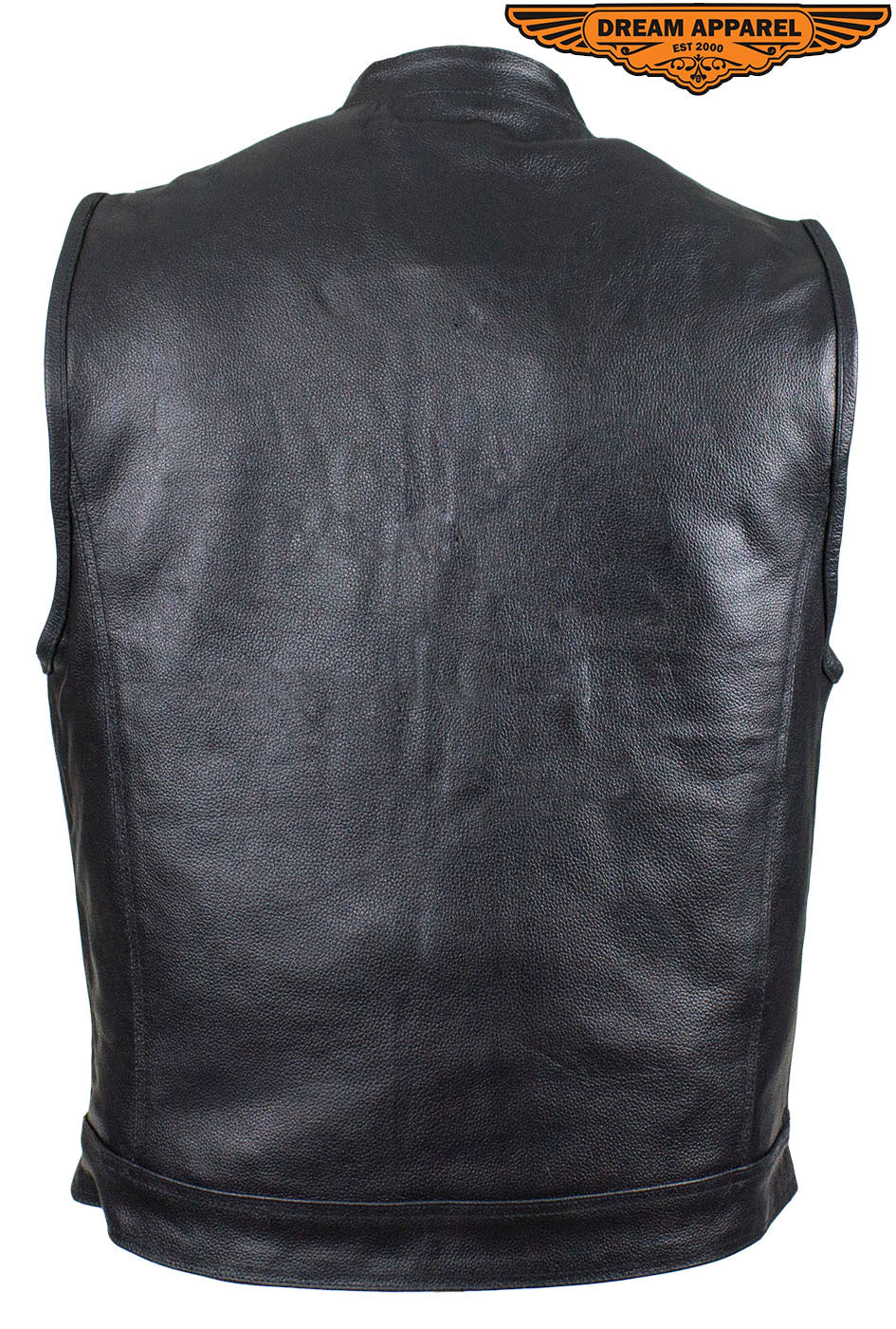 Dream Apparel Mens Leather Motorcycle Club Vest With Pockets