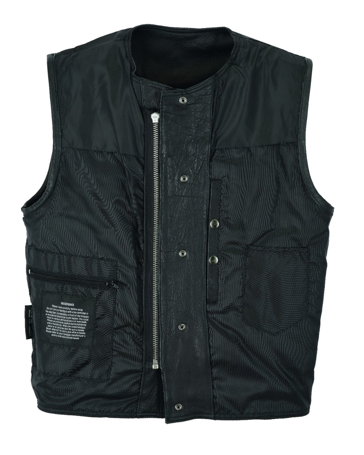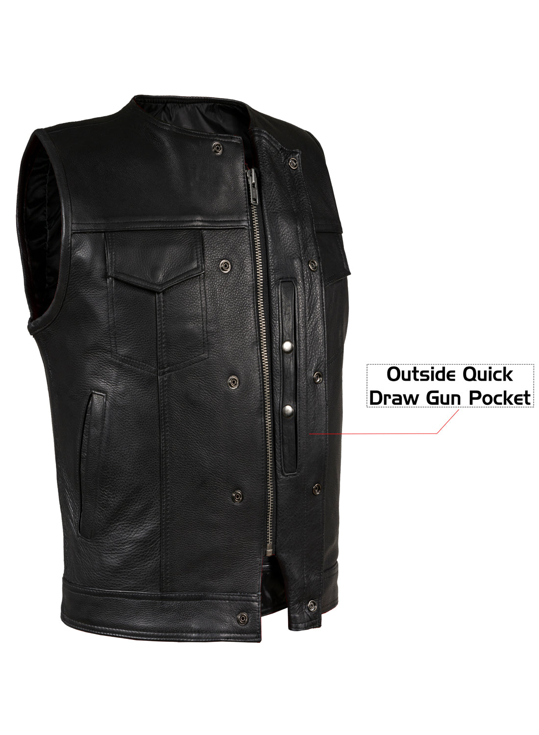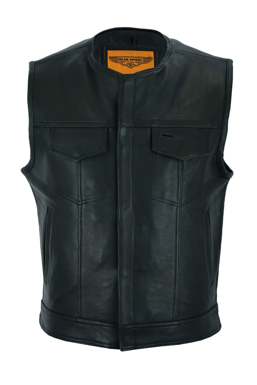 Mens Leather Motorcycle Club Vest With Zipper & No Collar