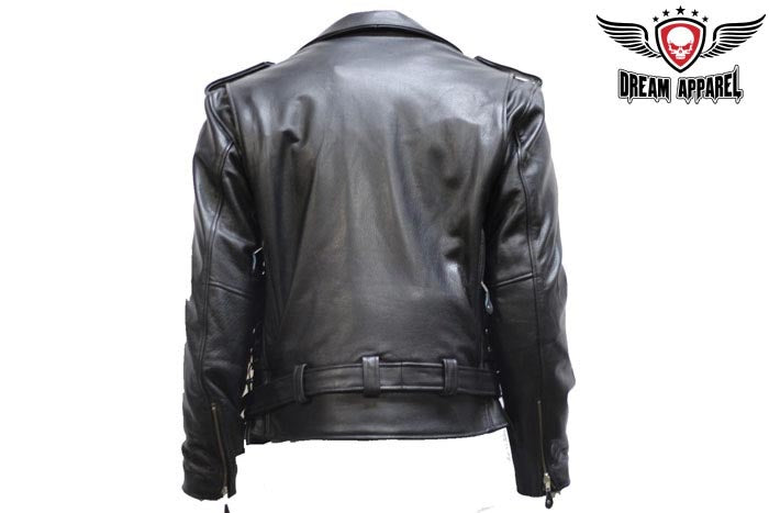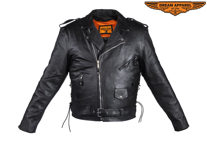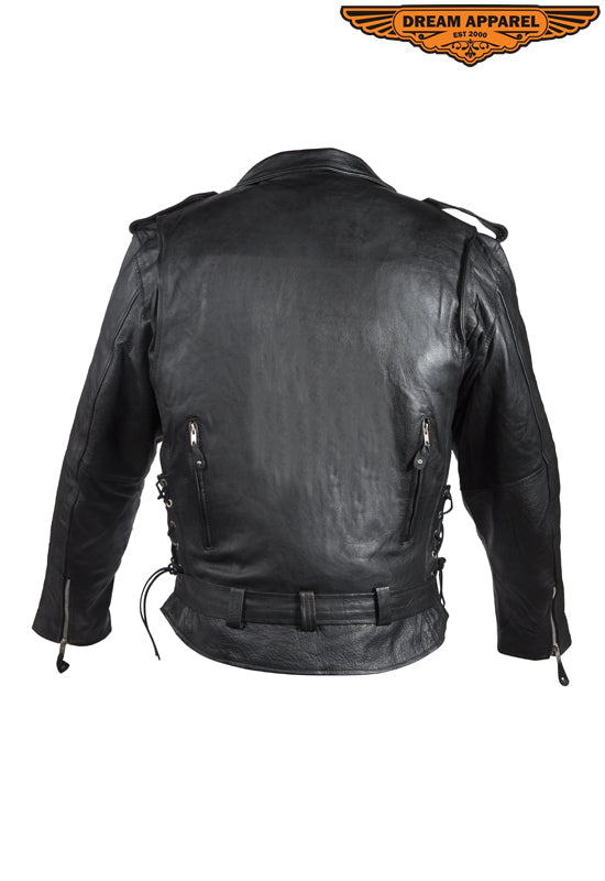 Mens Leather Motorcycle Jacket With Classic Collar