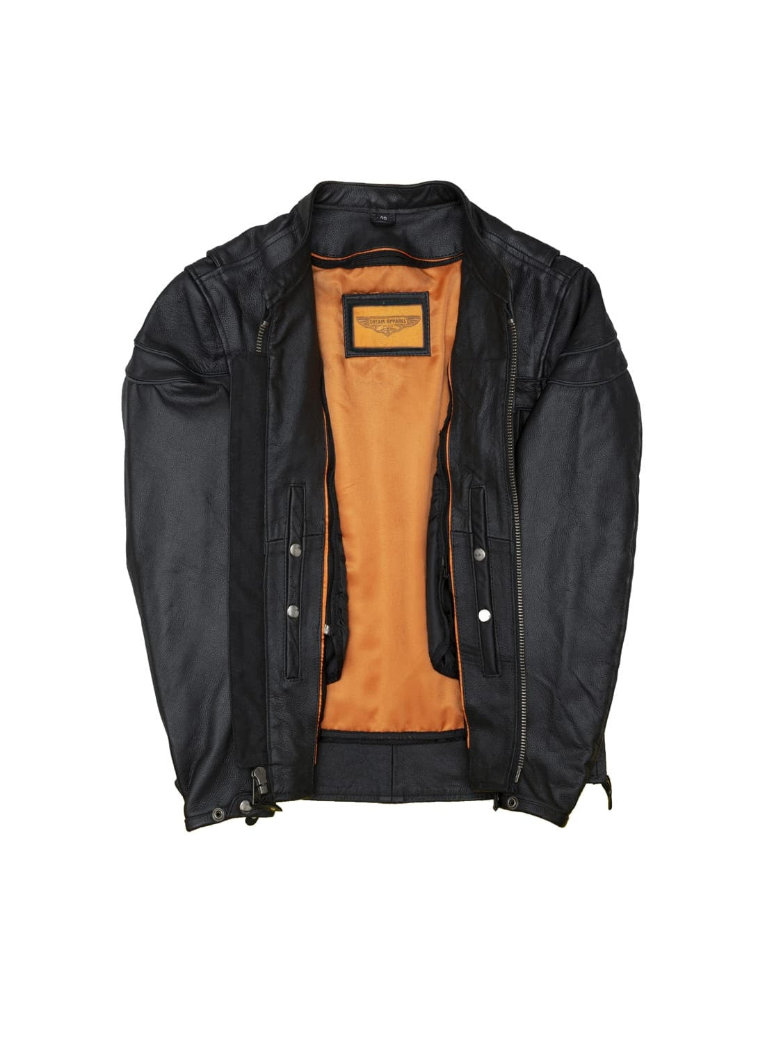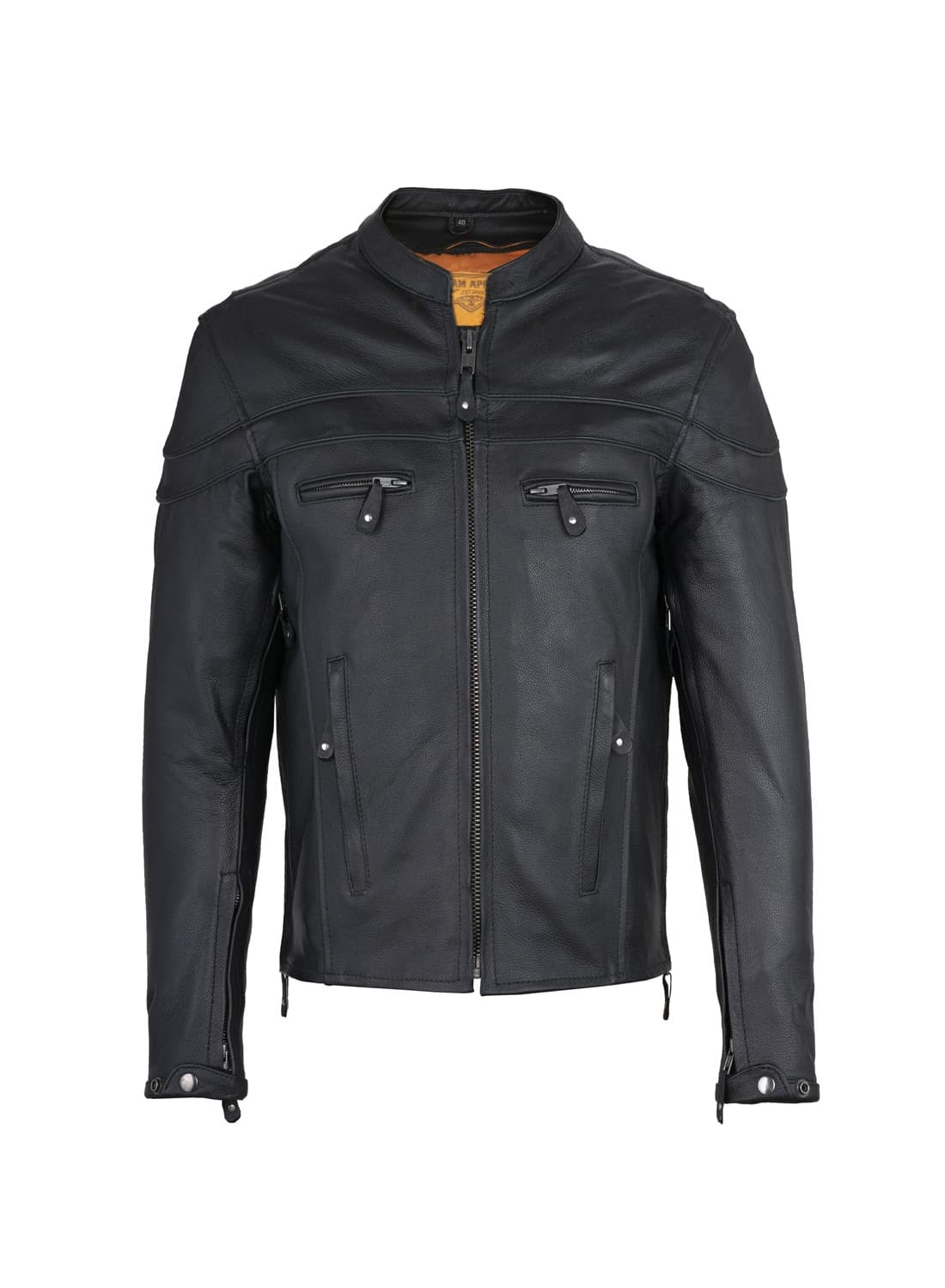 Mens Leather Motorcycle Racer Jacket Premium Cowhide Leather Zipper Front