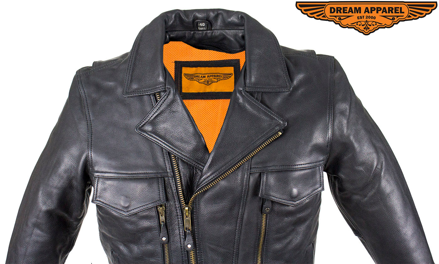 Mens Leather Racing Style Motorcycle Jacket