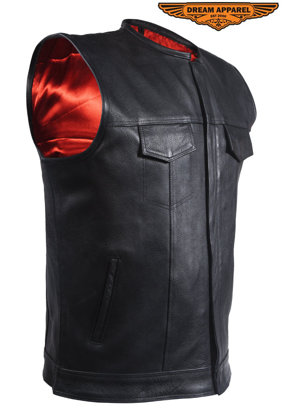 Mens Leather Vest With No Collar