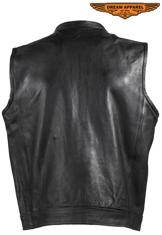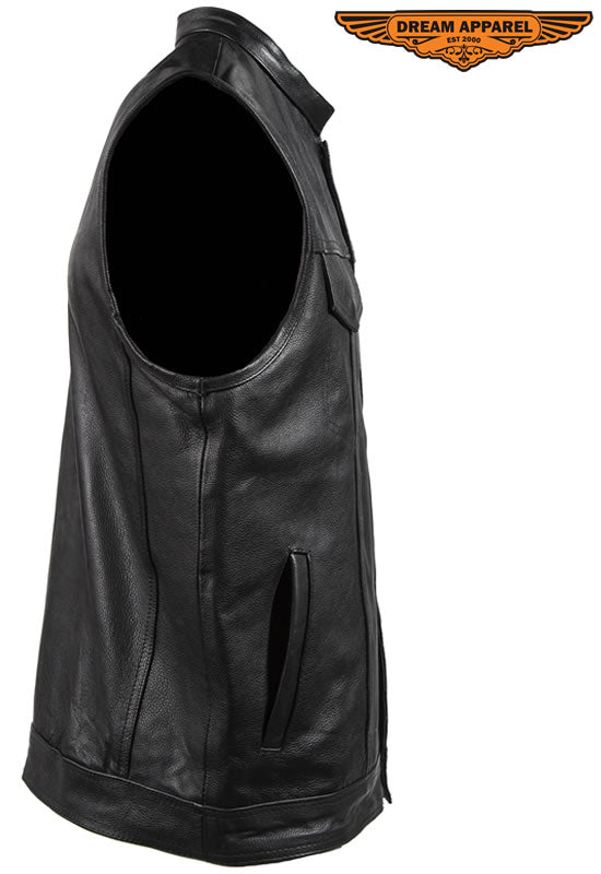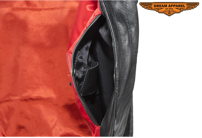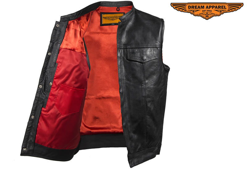 Mens Motorcycle Club Leather Vest With Red Liner & Gun Pocket