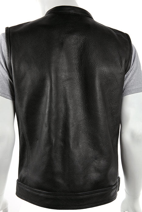 - 1 slip pocket inside right Dream Apparel understands the value of freedom, comfort, and personal protection. That's why we've made this genuine naked cowhide leather vest with two deep concealed gun pockets inside with button snaps, an inside slip pocket, and an inside zippered pocket. You're going to love the fit and feel of a premium cowhide leather club vest with a racing style collar, soft leather trim around the neck and arms, and a zippered front closure with button snaps. Make it truly your own by sewing any patches or embroidery onto the one-piece back panel. The two roomy slip pockets on the waist and two breast pockets with button-down flaps give you all the room you need for a days ride and will have you ready for whatever adventures await.