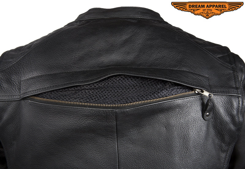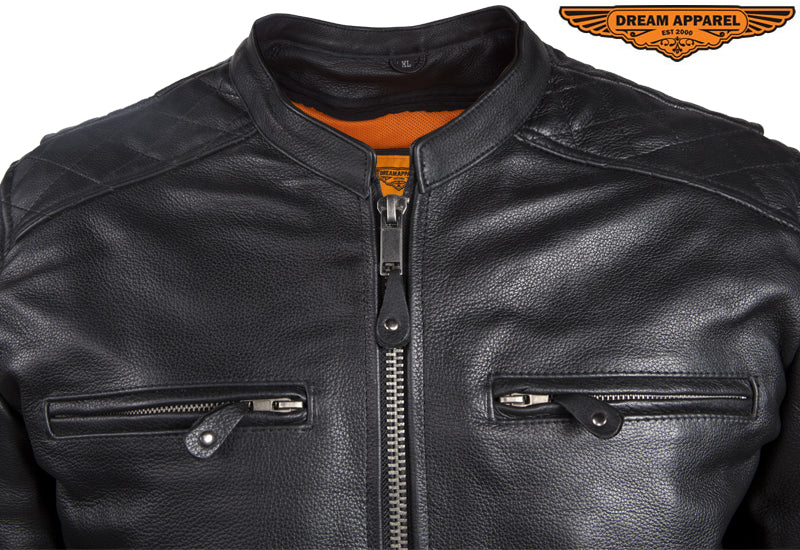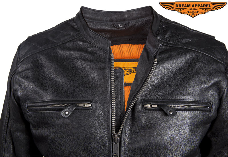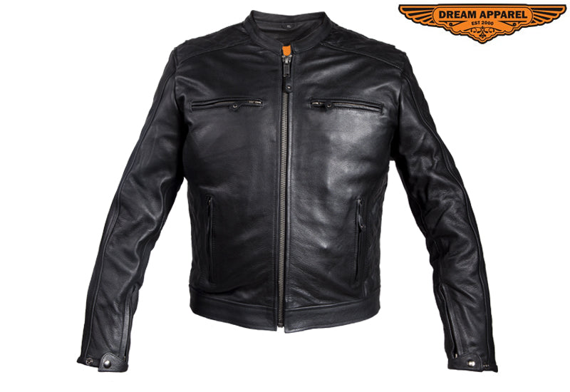 Mens Motorcycle Jacket With Diamond Pattern On The Sides & Shoulders