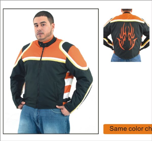 - Vibrant orange, white, and yellow pattern on shoulders, sides, and sleeves for added visibility
