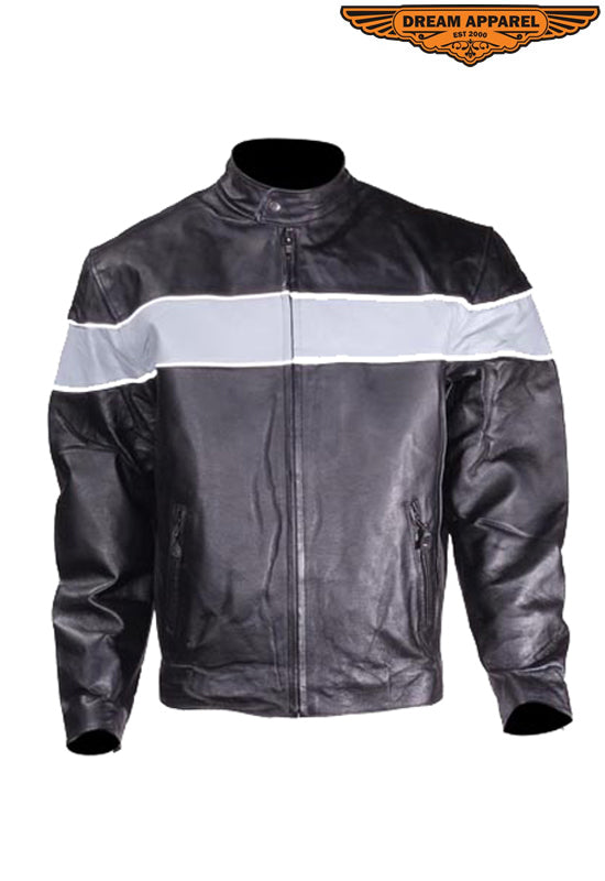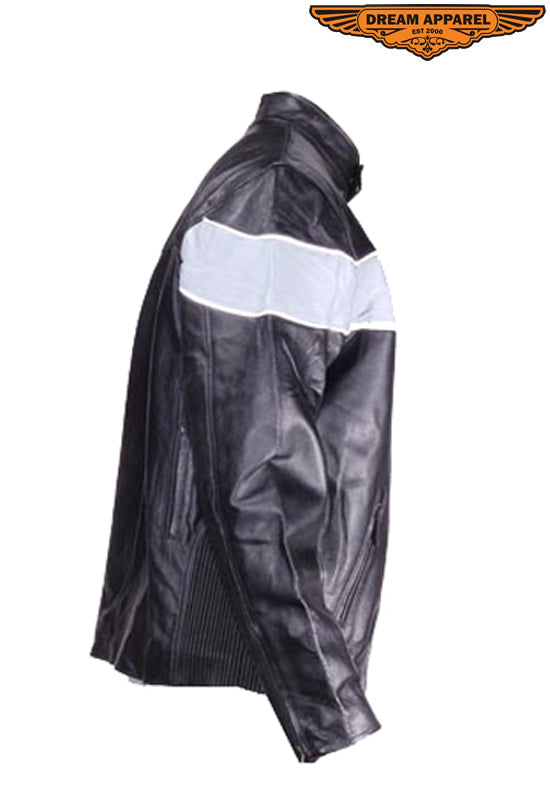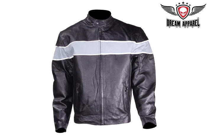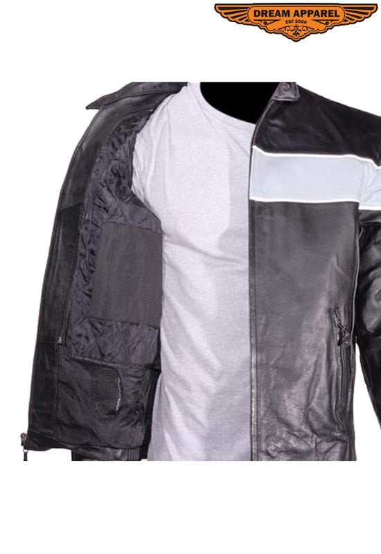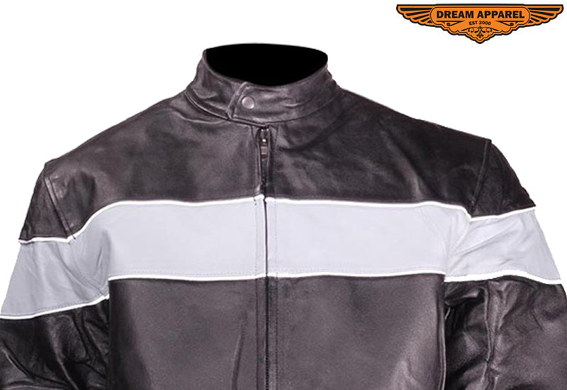 Dream Apparel Mens Motorcycle Jacket With Silver Racing Stripe
