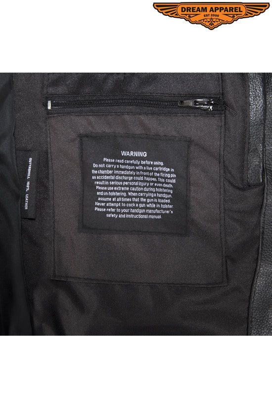 Mens No Collar Leather Motorcycle Club Vest With Black Liner
