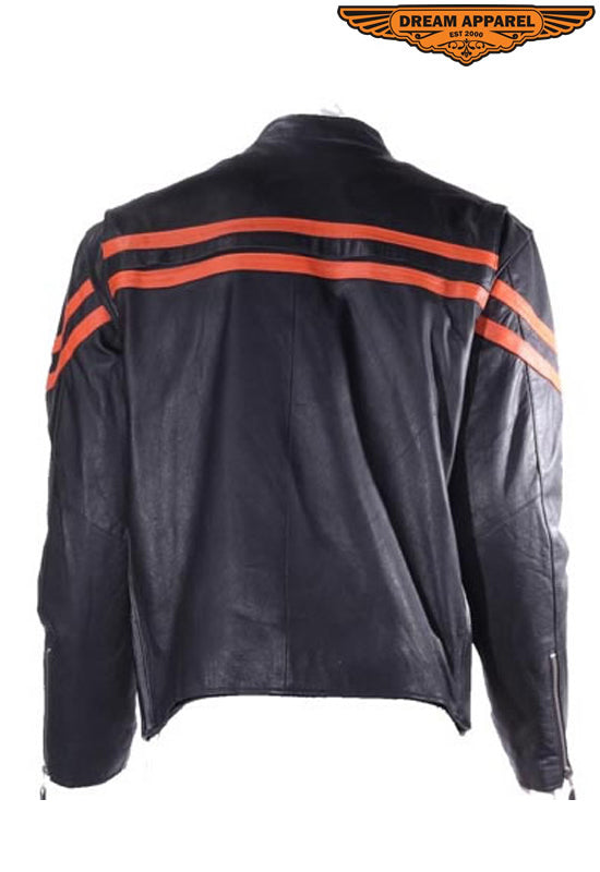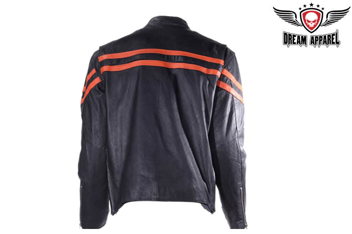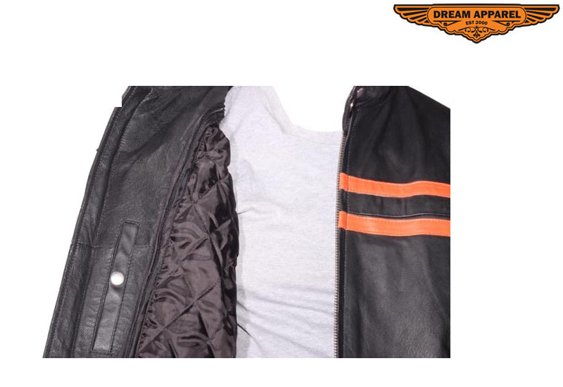 - Stylish Orange Racing Stripes Across Front/ Back of Jacket