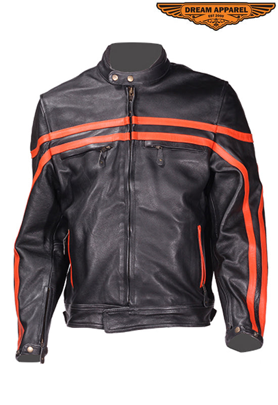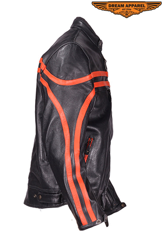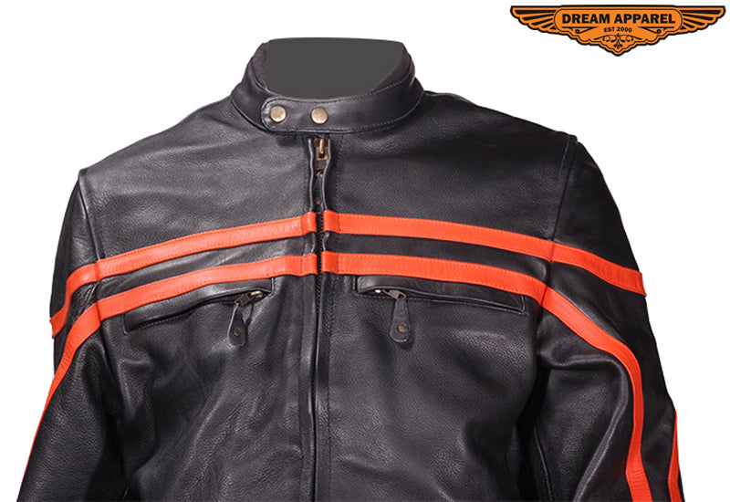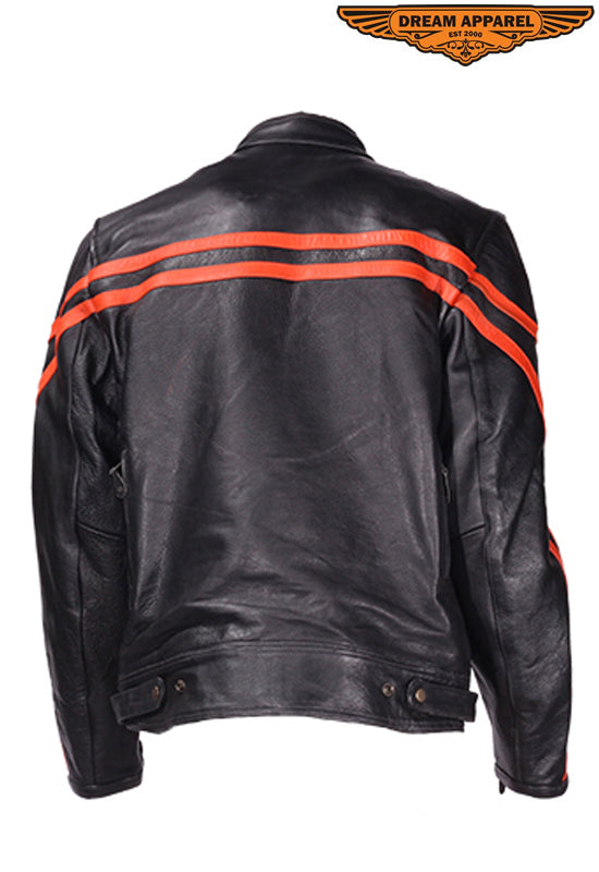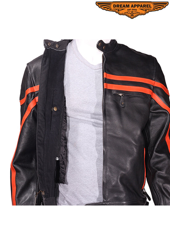 Mens Racer Style Leather Jacket with Zippered Cuffs