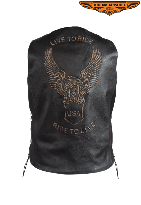 - Embossed eagle and "Live to Ride, Ride to Live" on back