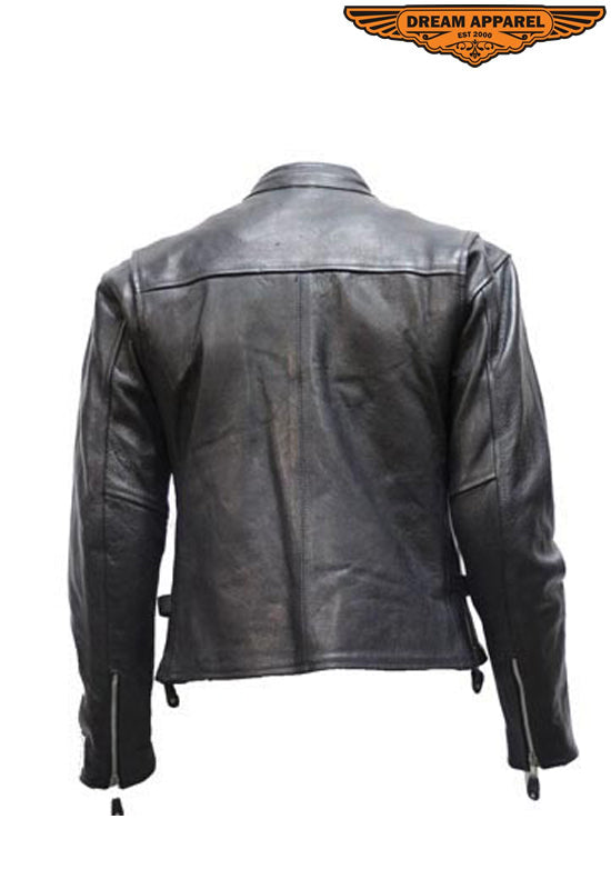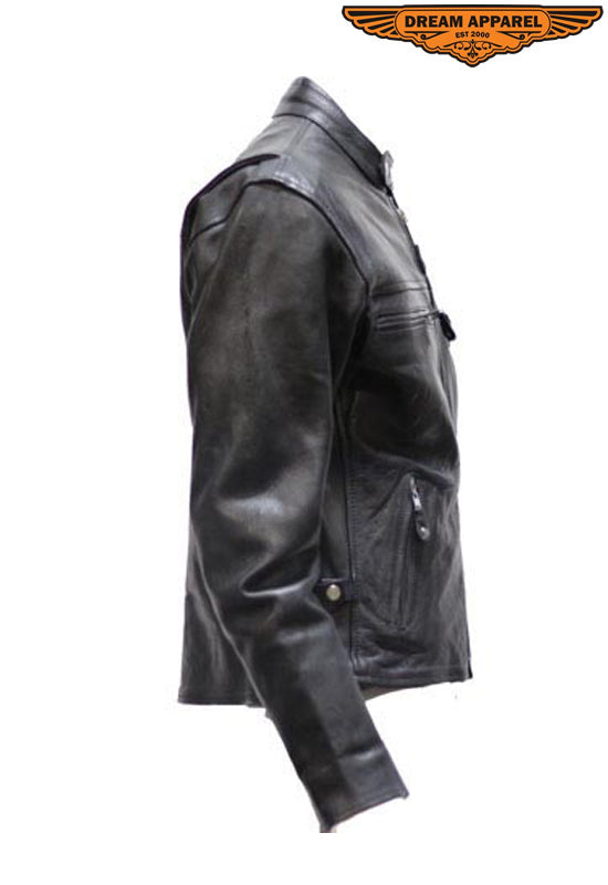 Mens Split Cowhide Leather Scooter Jacket W/ Z/o Lining