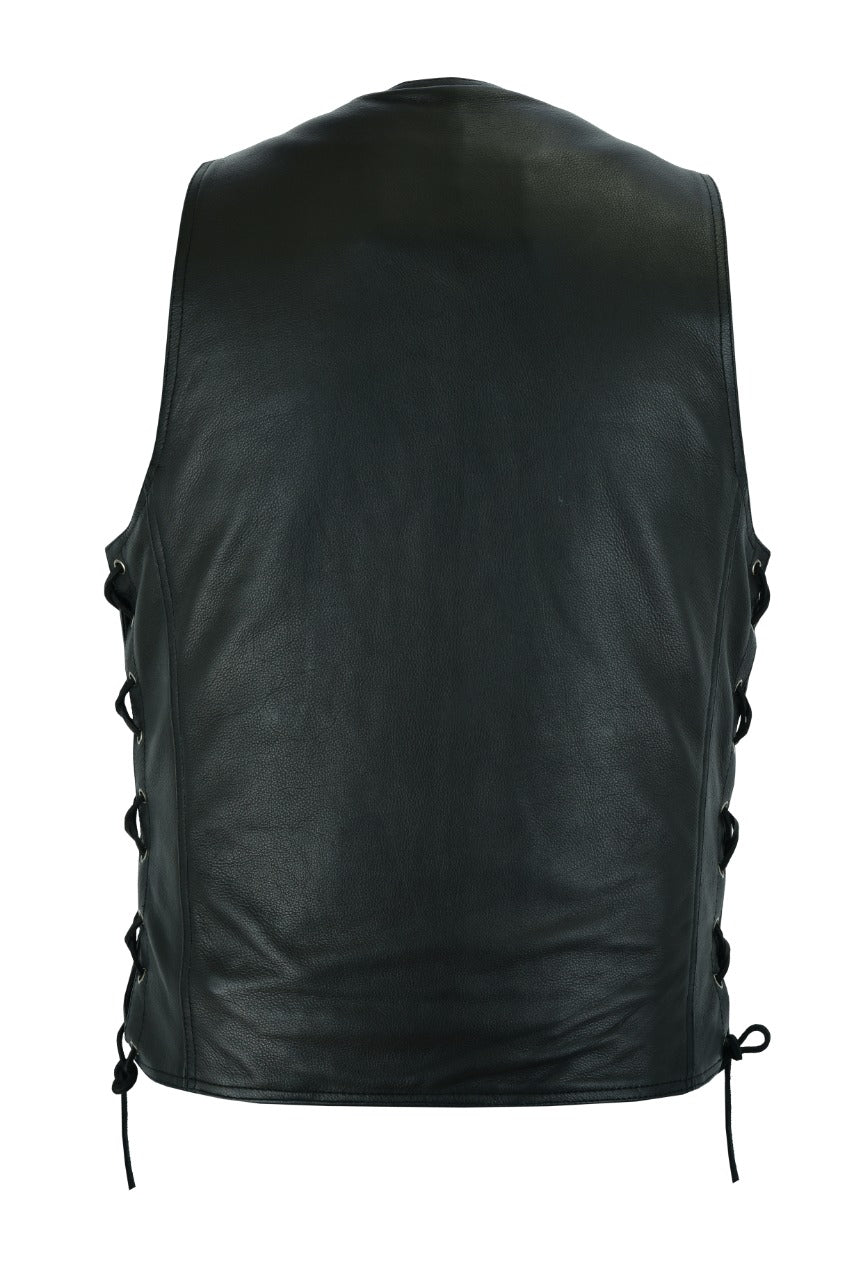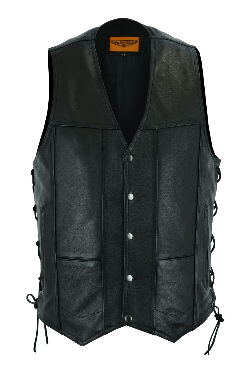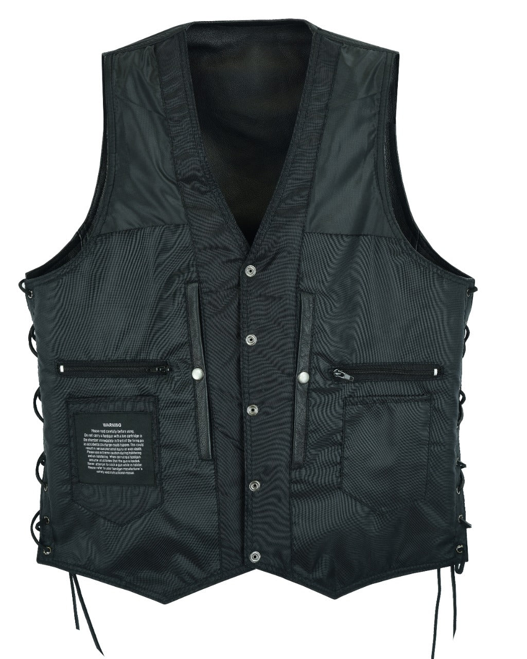Mens Ten Pockets Premium Leather Vest with Concealed Carry Pockets & Side Laces