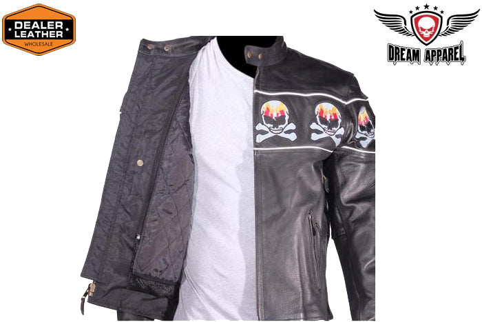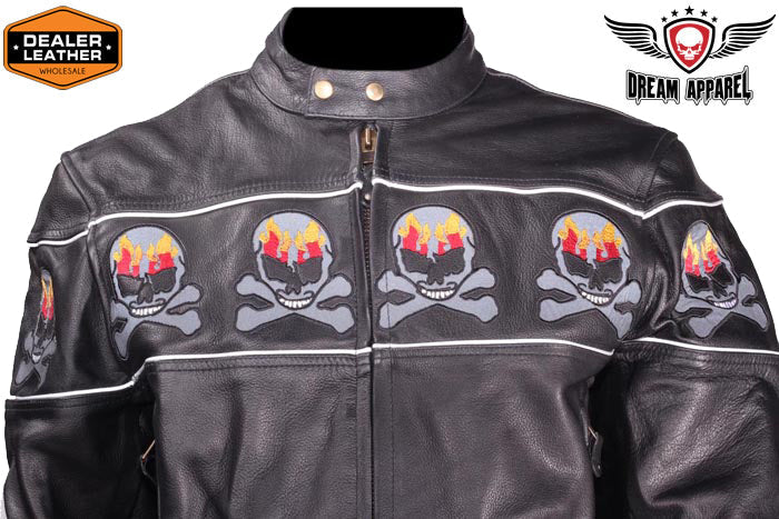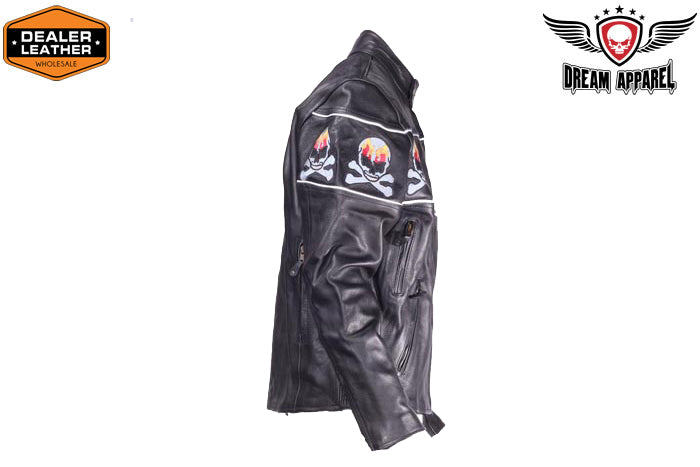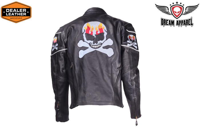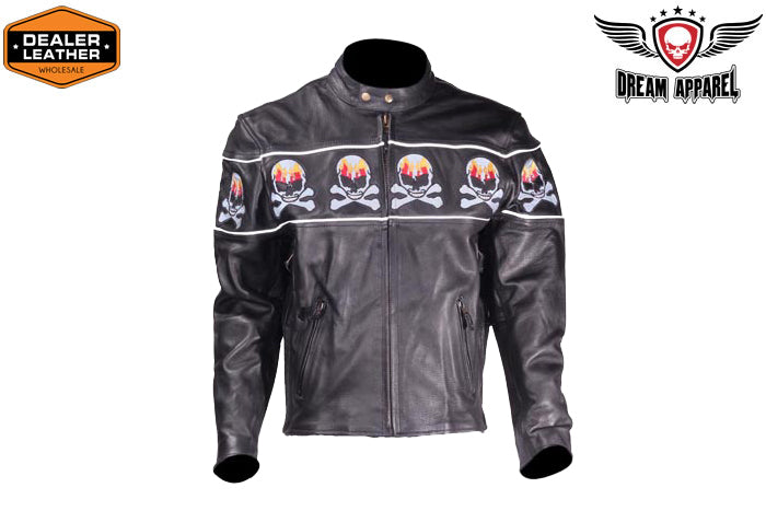 Motorcycle Leather Jacket With Skulls