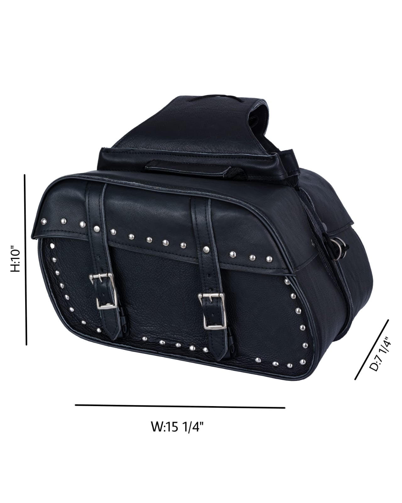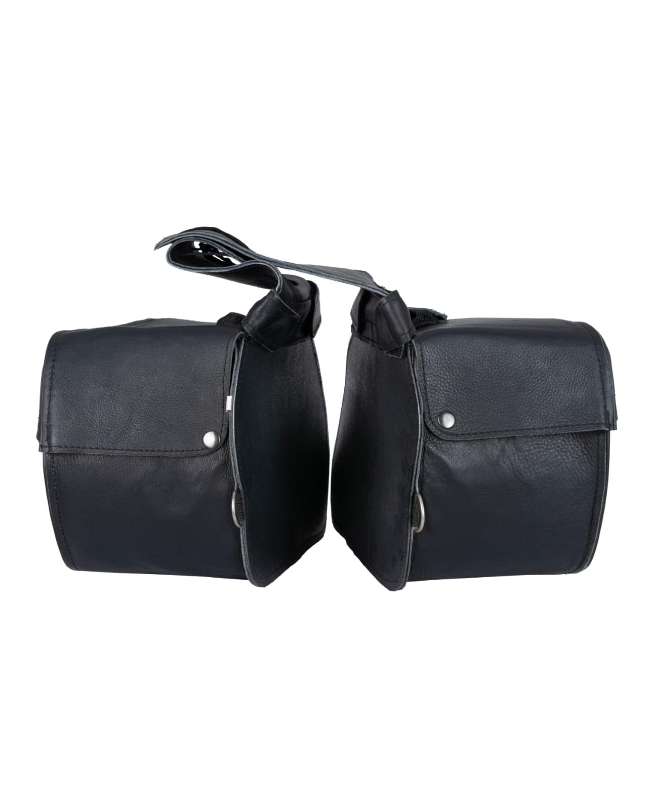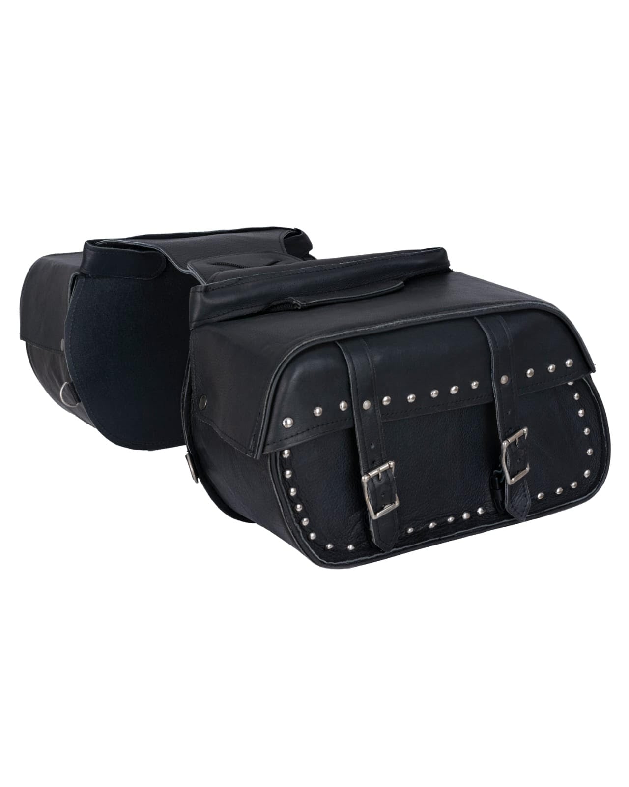 Dream Apparel Black Motorcycle Leather Saddlebags with Studs