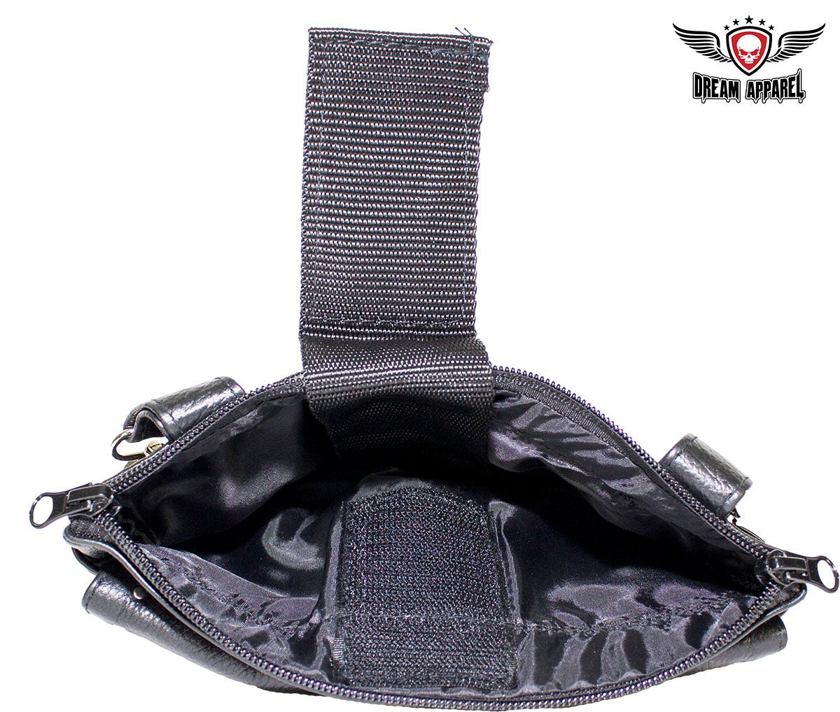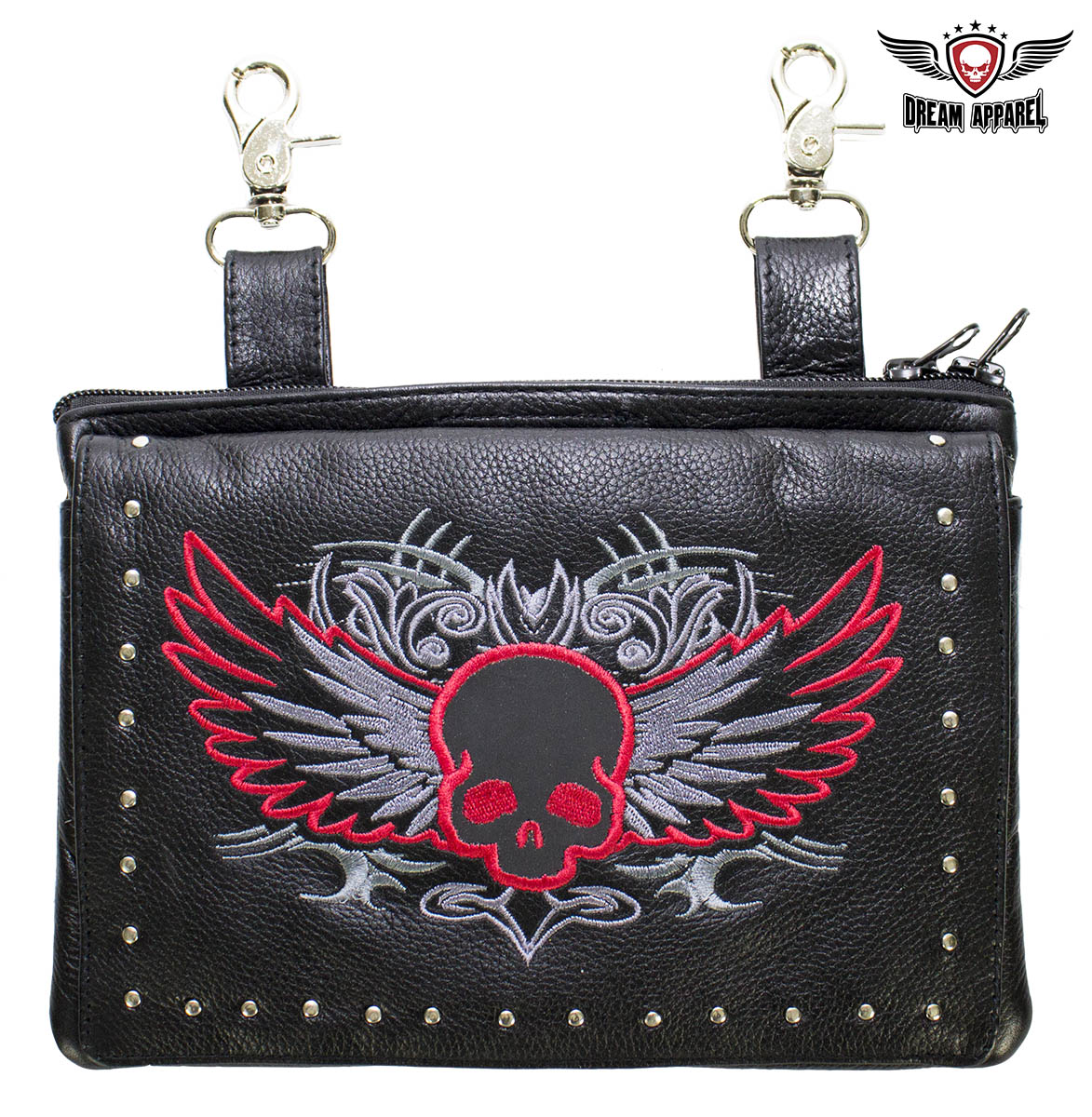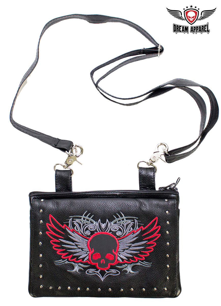 Naked Cowhide Leather Red Skull Gun Holster Belt Bag with Studs