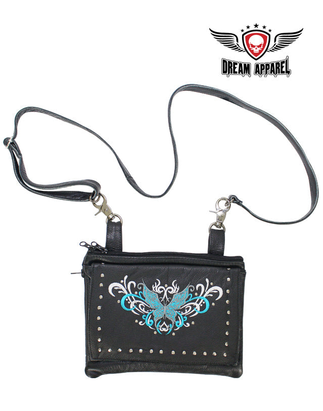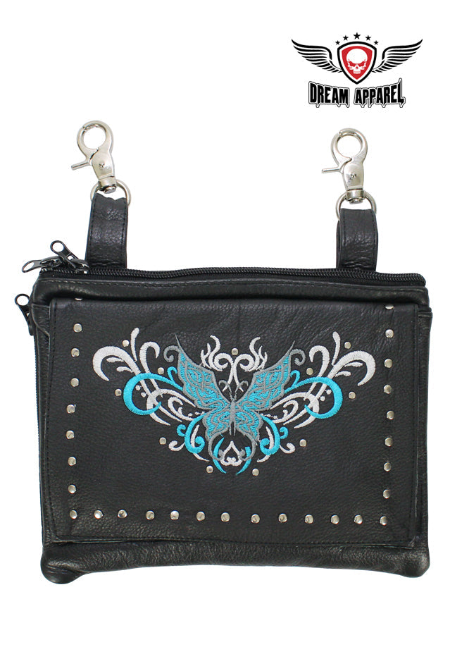 Naked Cowhide Leather Turquoise Butterfly Belt Bag W/ Studs