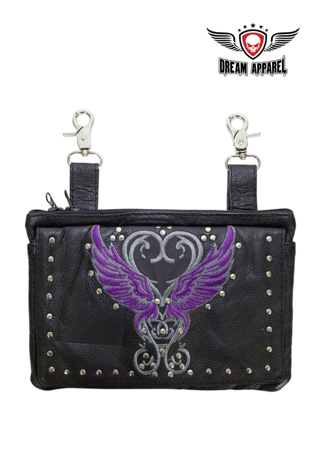 Studded Naked Cowhide Leather Belt Bag with Purple Wings