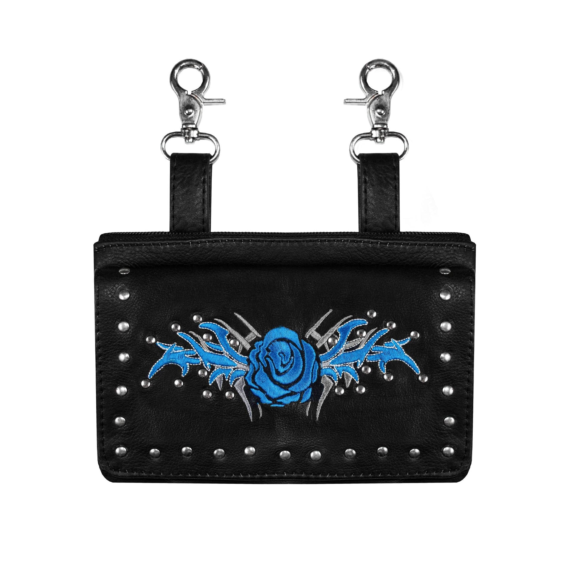 Studded Naked Cowhide Leather Belt Bag With Teal Wings